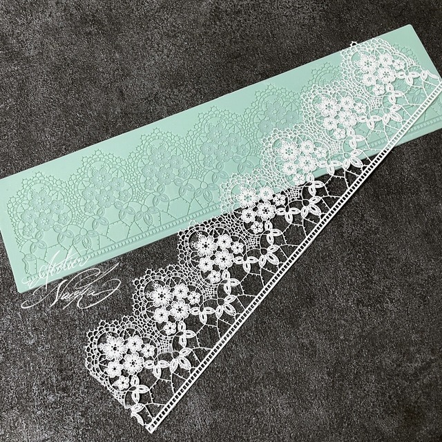 ラグジュアリーな雰囲気が素敵なレースシリコンモールドです。 クレイケーキ土台へのデコレーションや部分使いも出来て 便利なマットモールドです。 その他 レースキャンドルやレース石けんにも人気です。 材質:シリコン樹脂 仕上がりサイズ:約38.0cm×8.5cm (若干の誤差はご了承下さいませ) ※溝は深い部分と浅い部分があるデザインです。 *海外生産、ハンドメイドの為、多少の汚れ柄のずれキズ等がある場合もございます。 <取り扱いの際の注意事項> 無理な力がかかると破損の原因につながります。 お取り扱いには十分お気を付けください。 モニターによって、実際の商品と 色合いが異なって見える場合があります。
