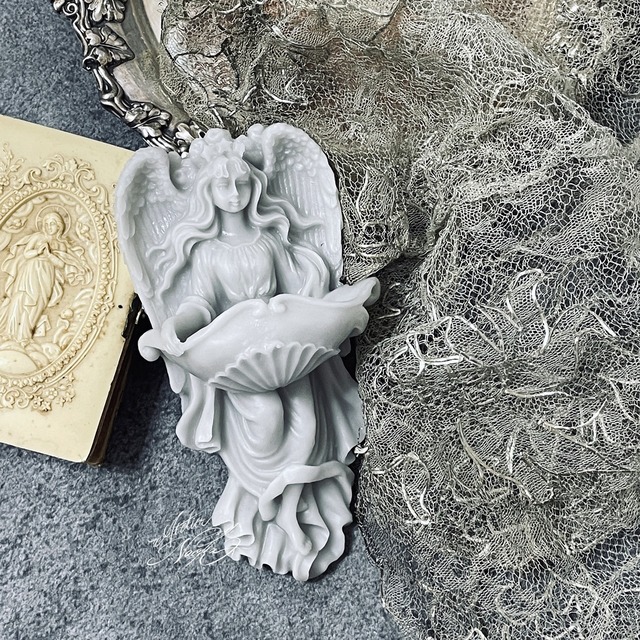 繊細なデザインが特徴 天使のベニティエ 聖水盤のシリコンモールドです✧ 器部分にお花をアレンジされても素敵です。.:*・゚❀ インテリアとしても素敵なアクセントに♫ 石膏、アロマストーン、キャンドル、アロマワックス等 色々な素材でお楽しみ頂けます。 材質:シリコン樹脂 仕上がりサイズ: 約15.8cm×8.0cm 厚み 最大 約4.3cm *多少の誤差はご了承くださいませ。 ※シリコンのカラーはランダムとなります。 *海外生産の為、多少の汚れ柄のずれ 汚れキズ等がある場合もございます。 <取り扱いの際の注意事項> 無理な力がかかると破損の原因につながります。 お取り扱いには十分お気を付けください。 モニターによって、実際の商品と 色合いが異なって見える場合があります。