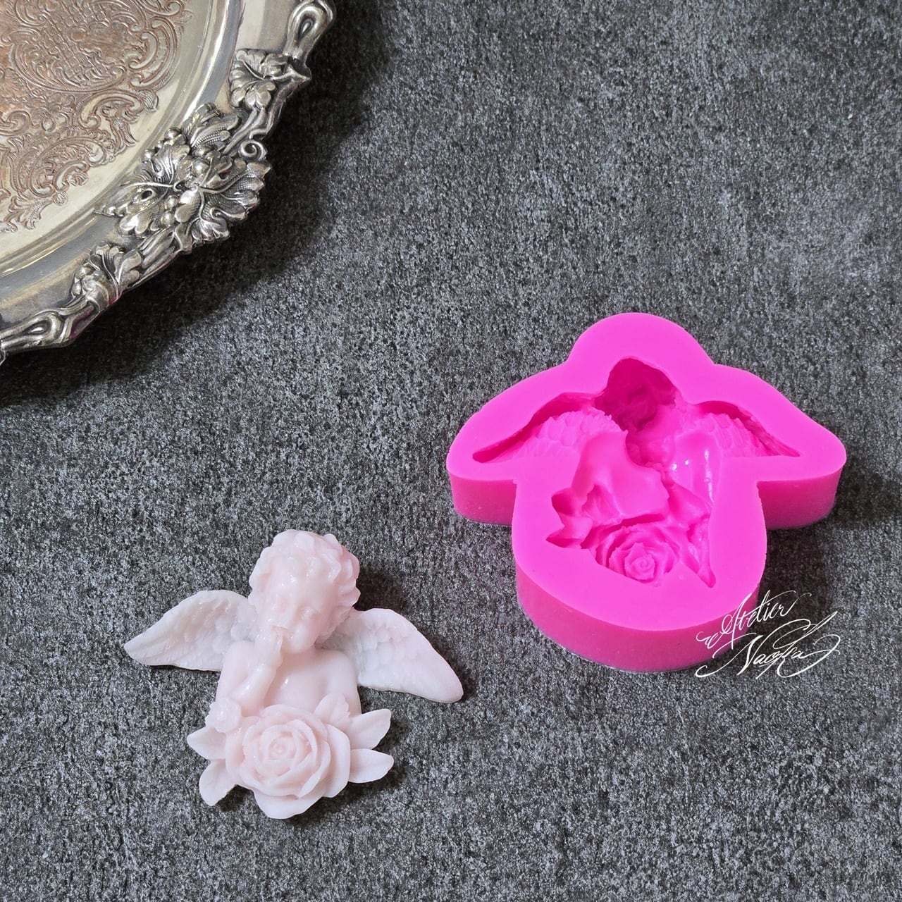天使とローズが描かれたシリコンモールドです。
