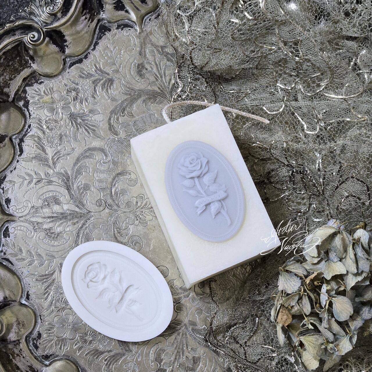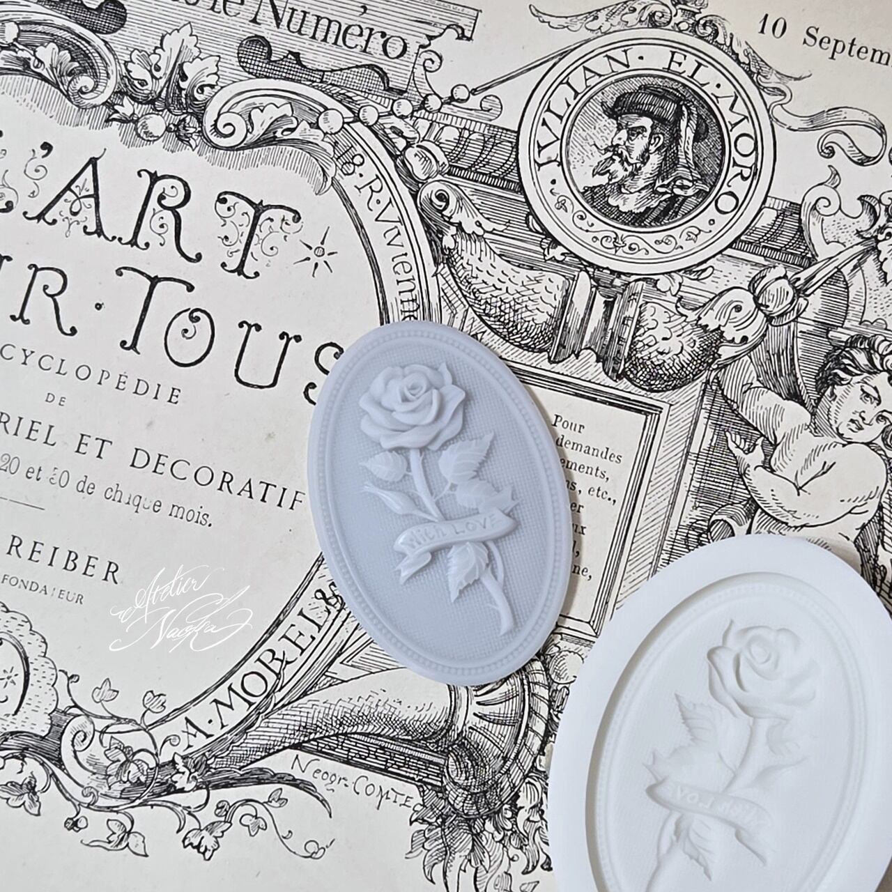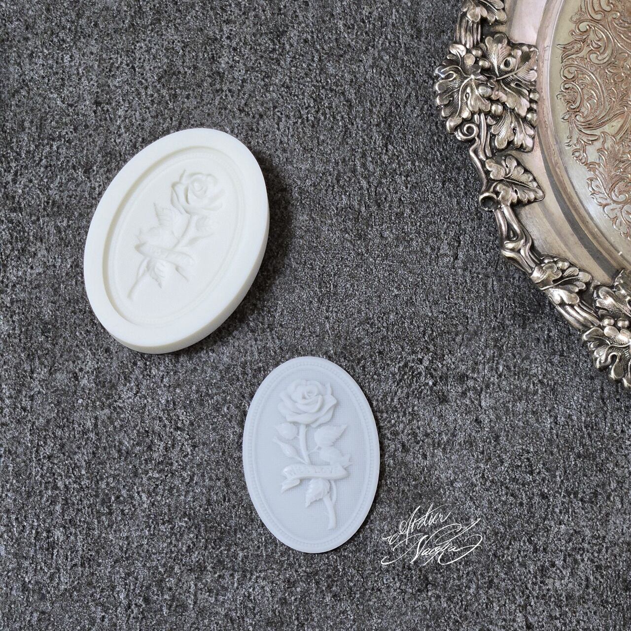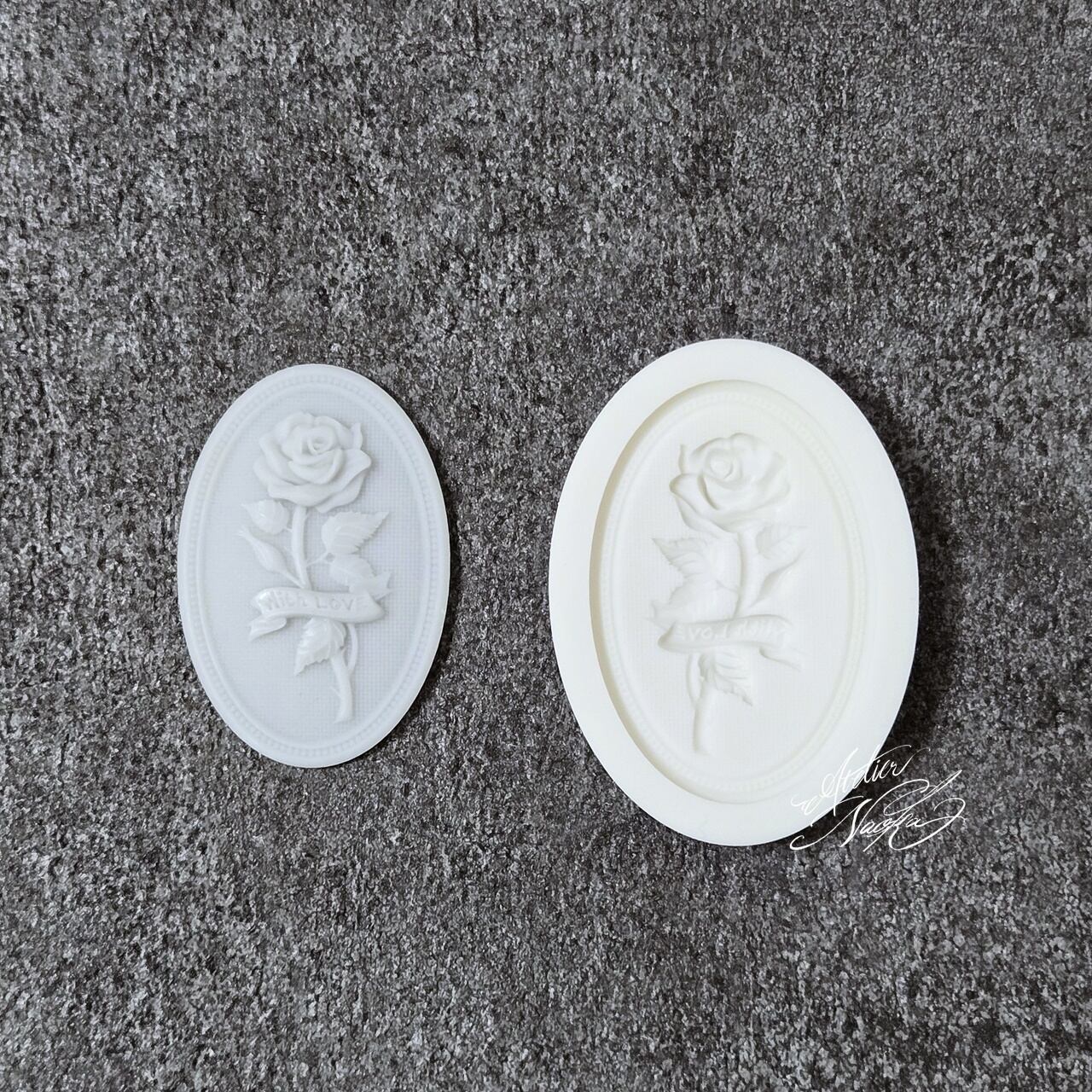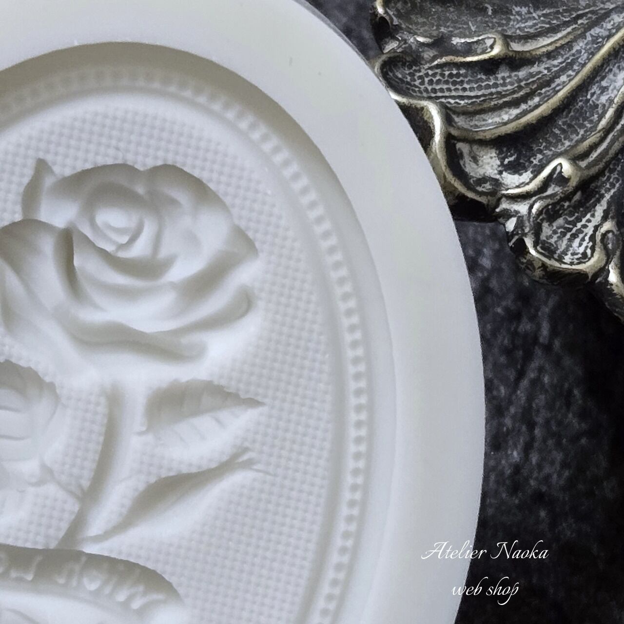 薔薇の花が描かれたカメオ型のシリコンモールドです。