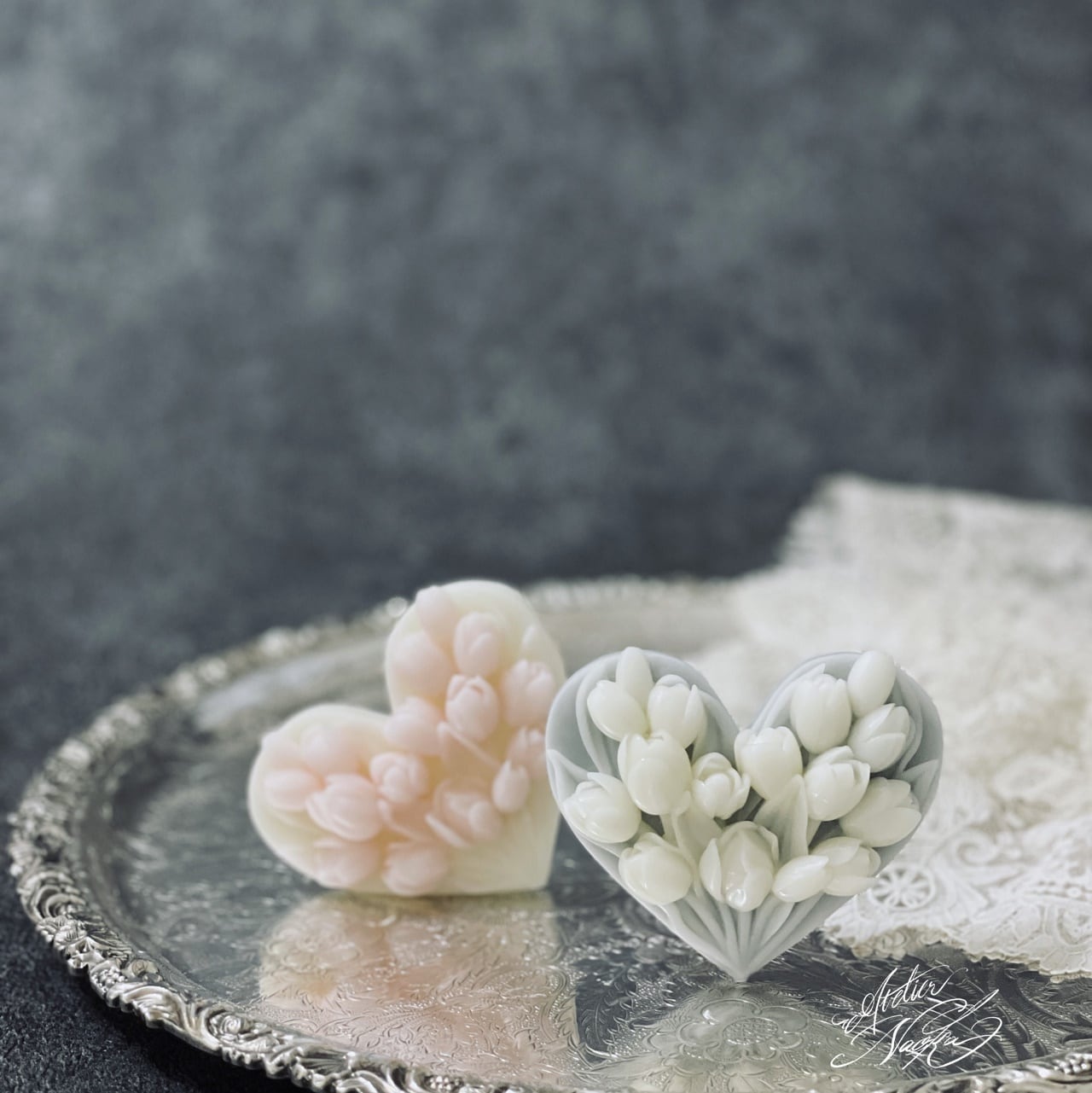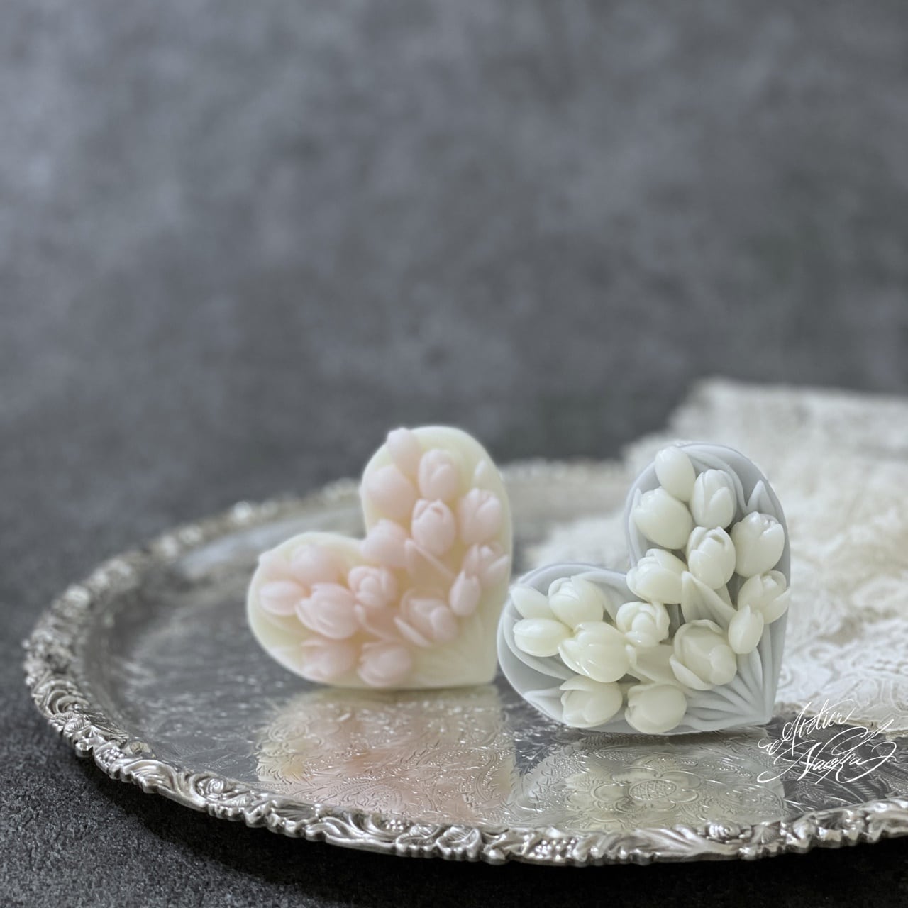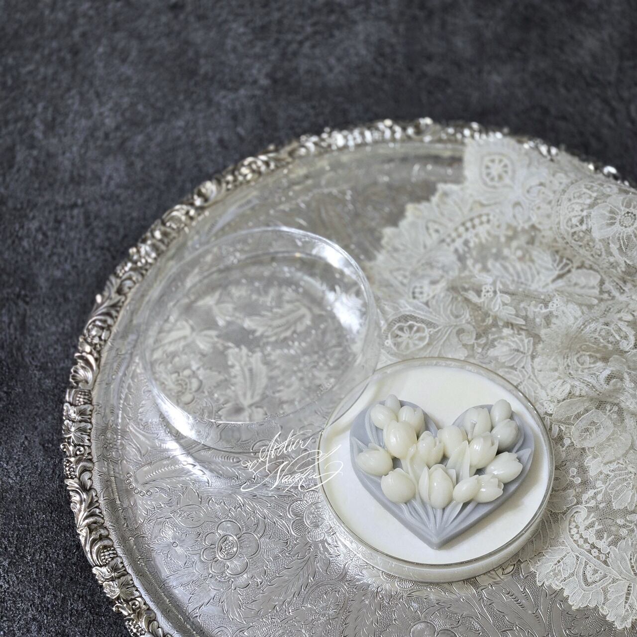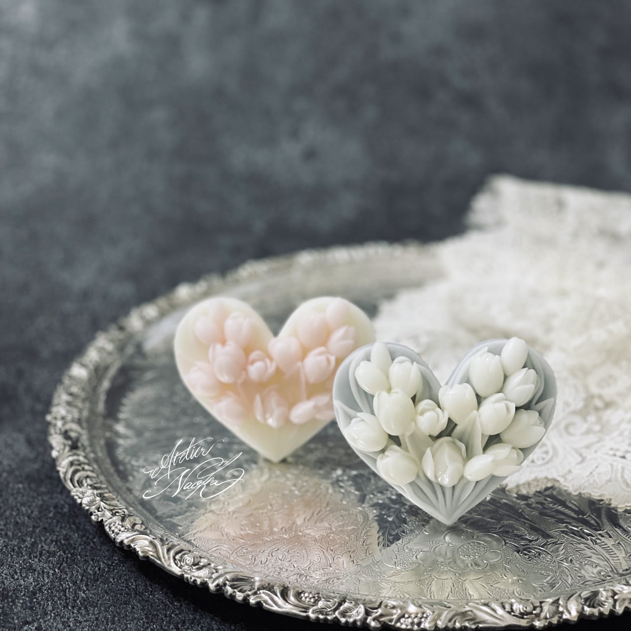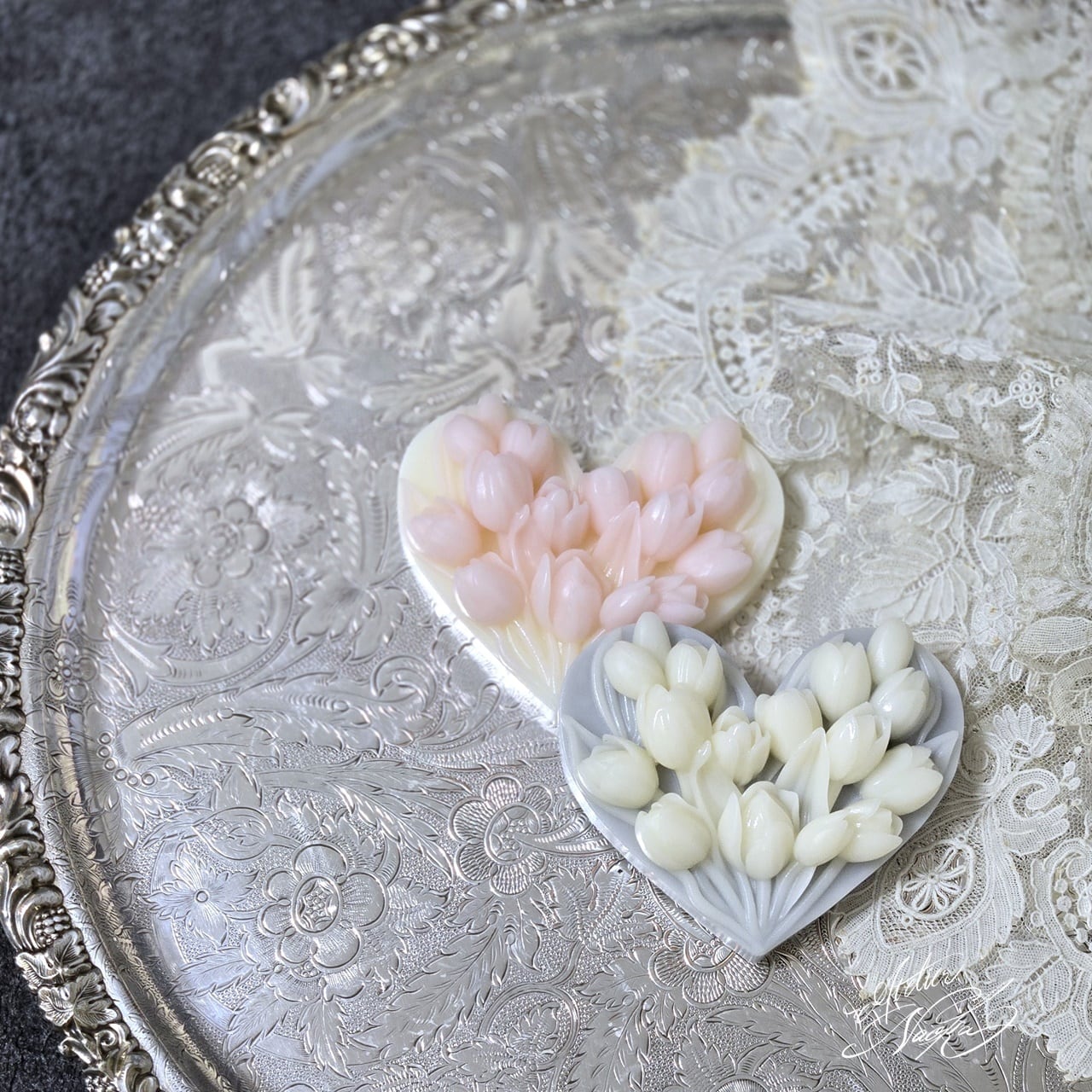 ハートベースにチューリップのレリーフが施されており、