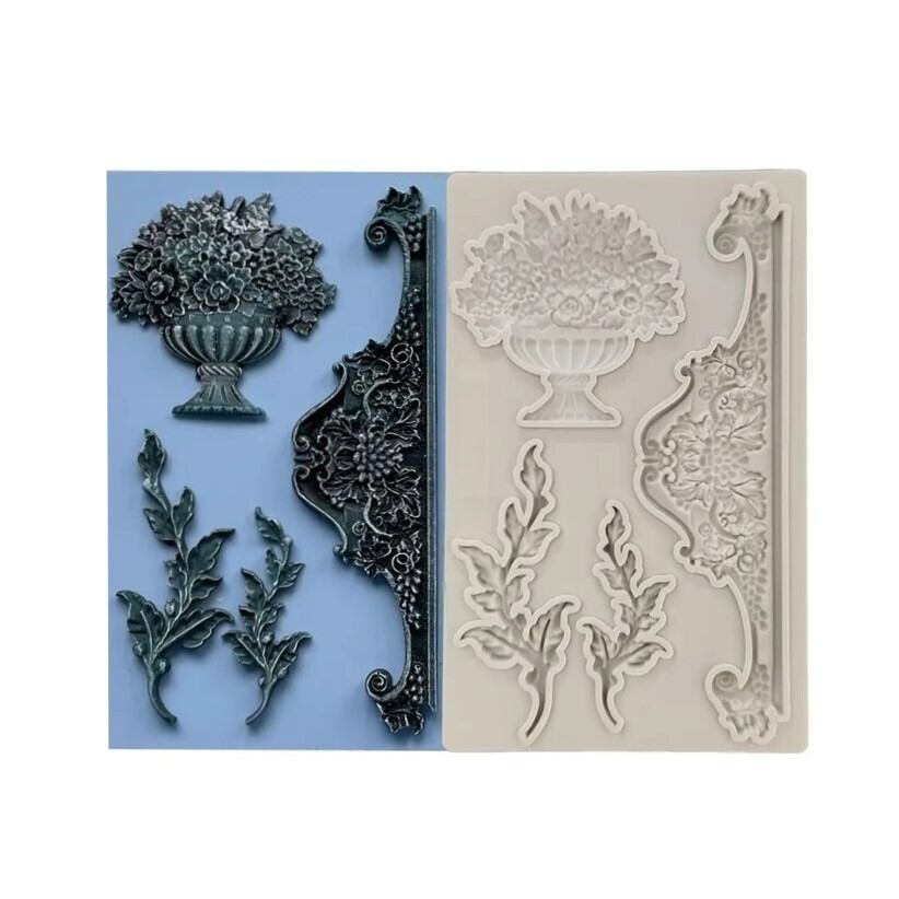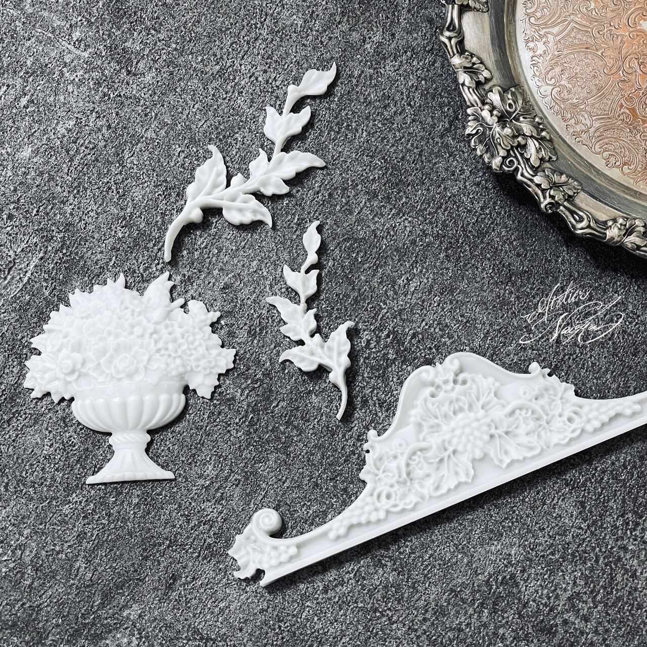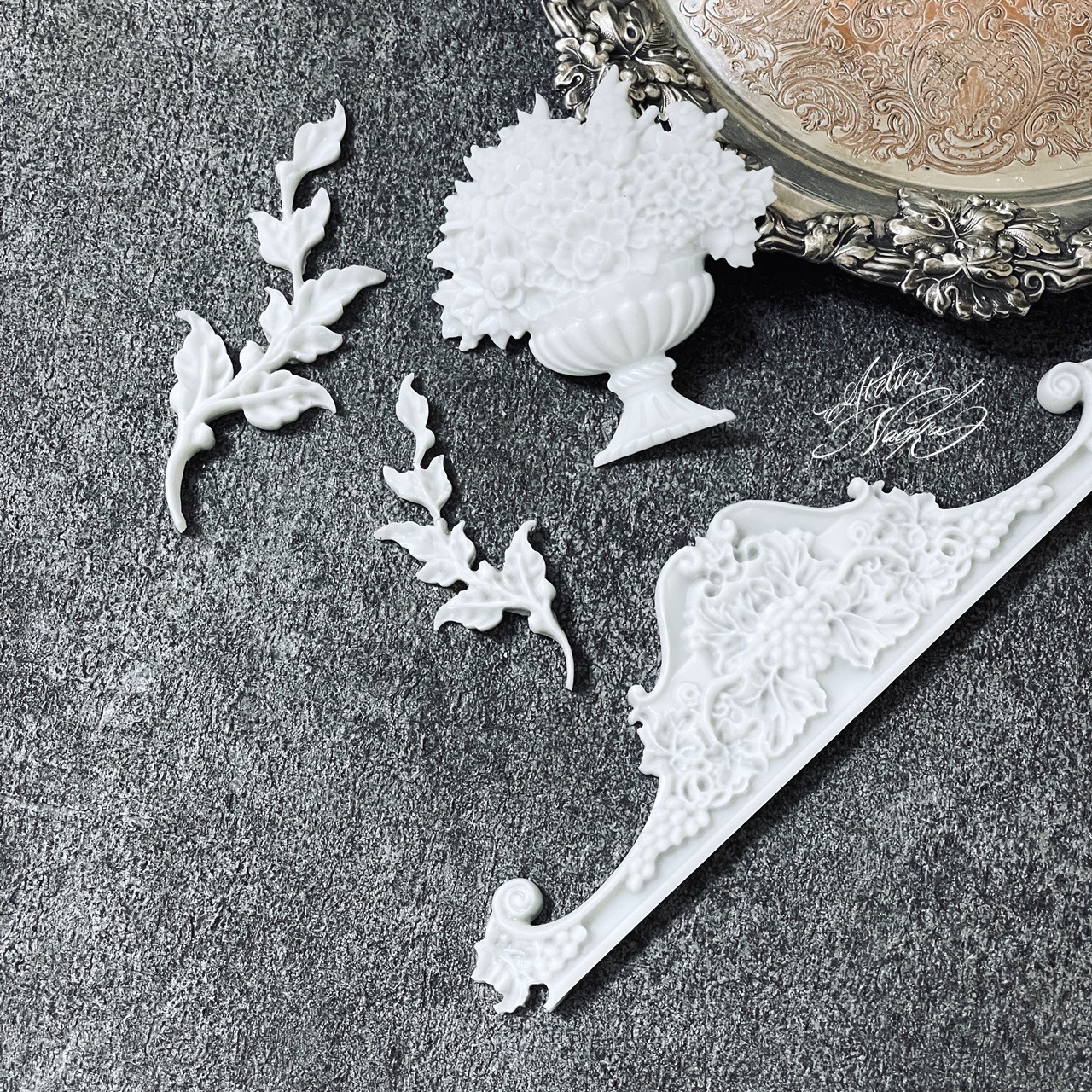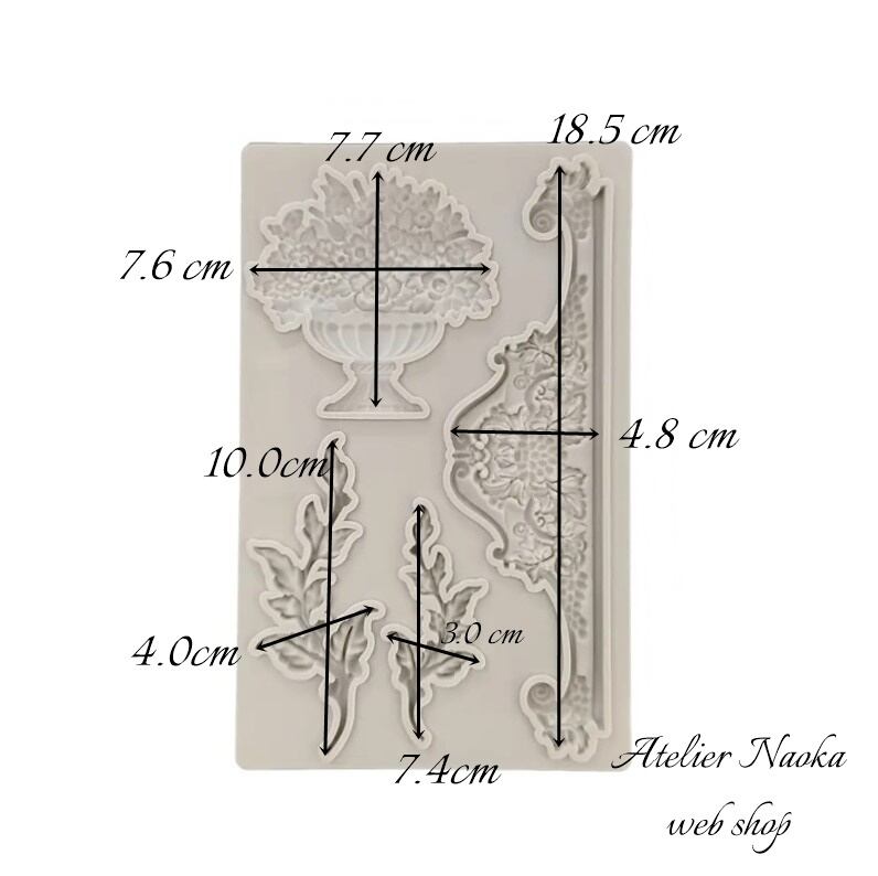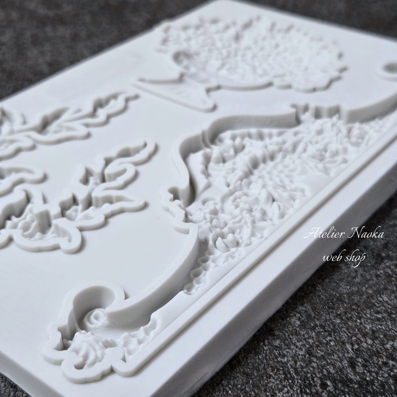 フラワーモチーフとリーフ模様がSETになったシリコンモールドです。