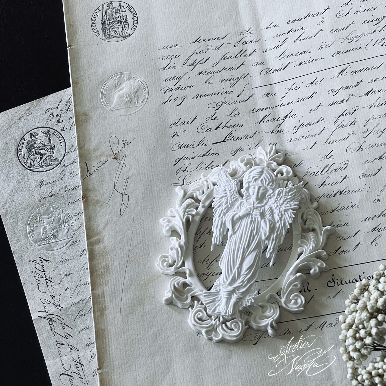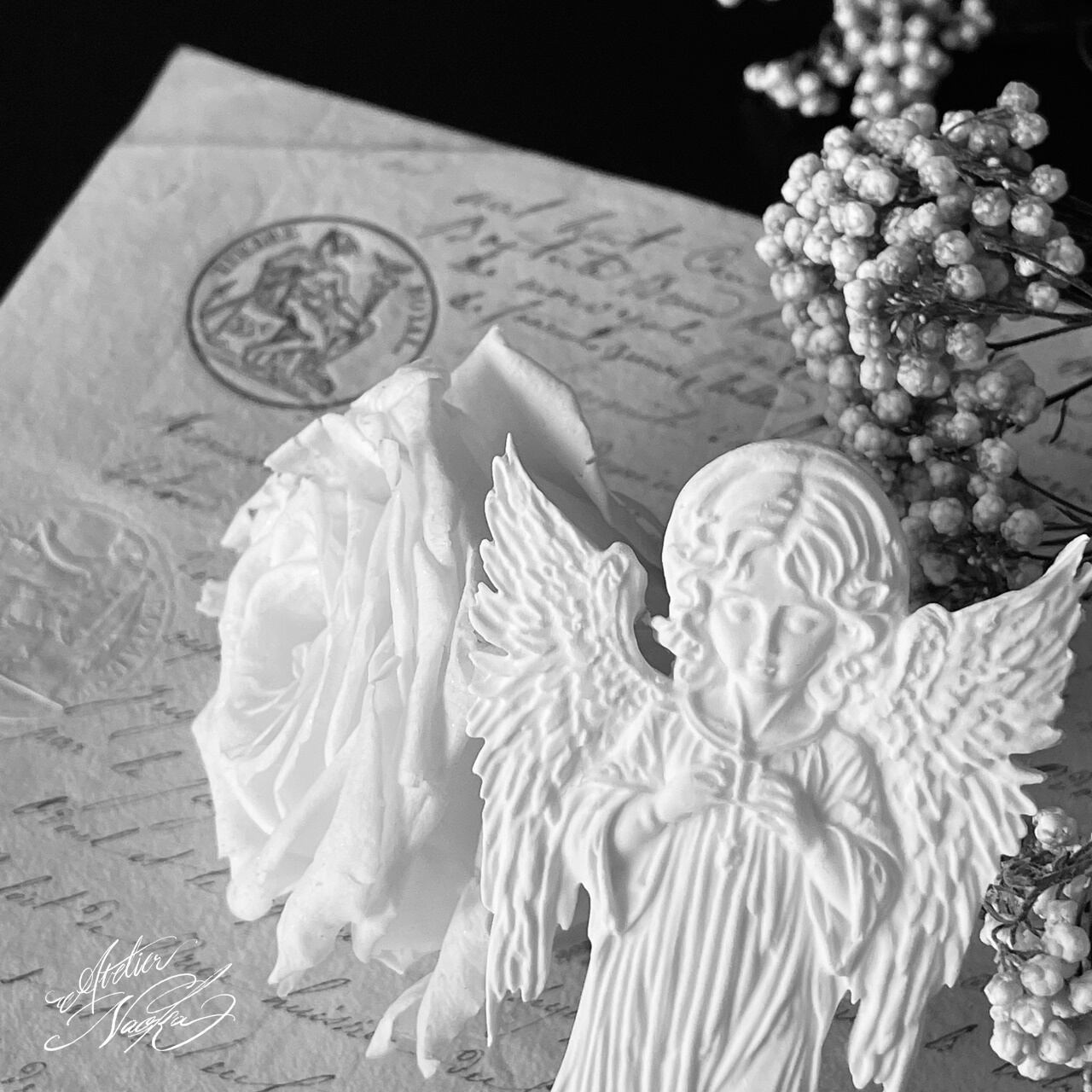 美しい天使のレリーフが施された
