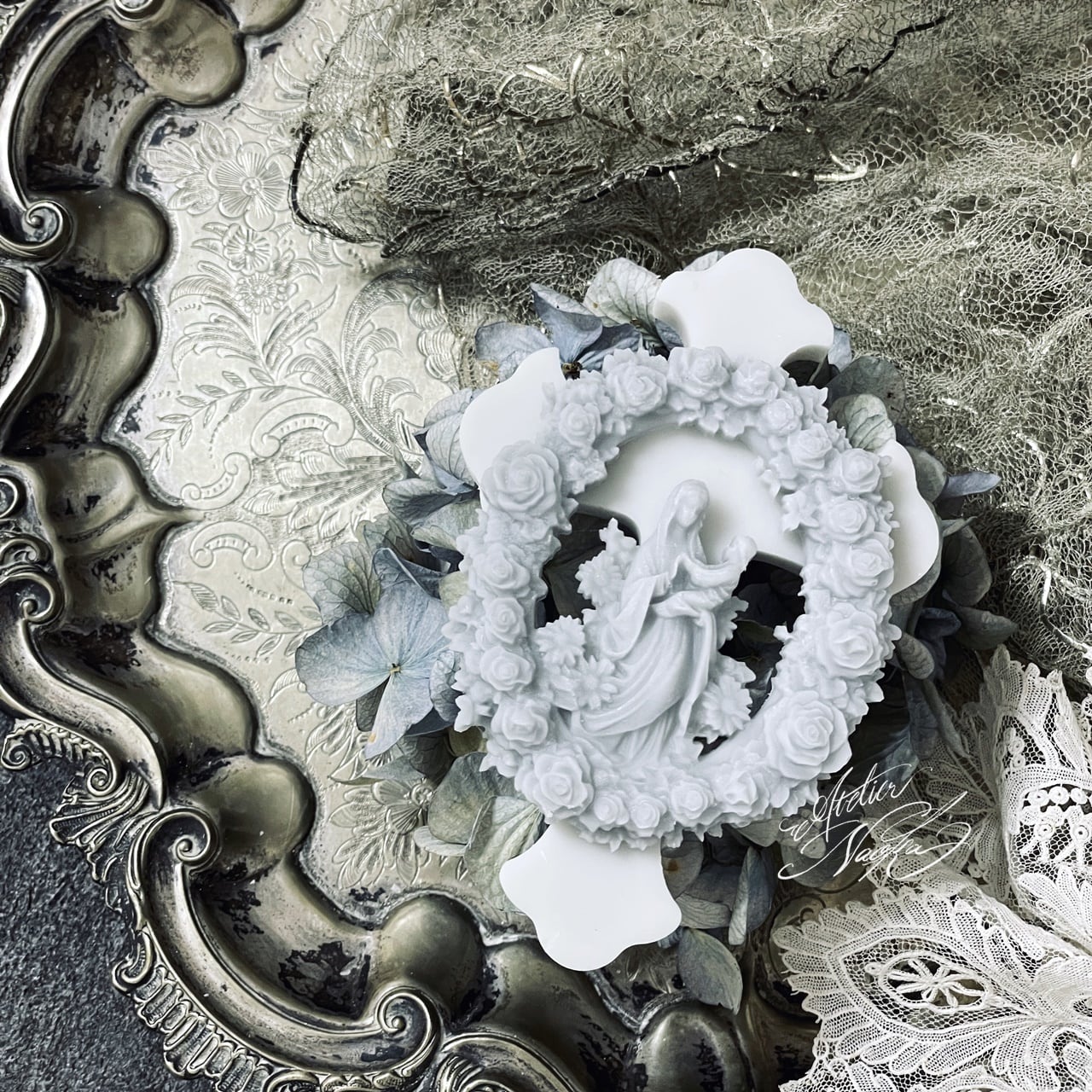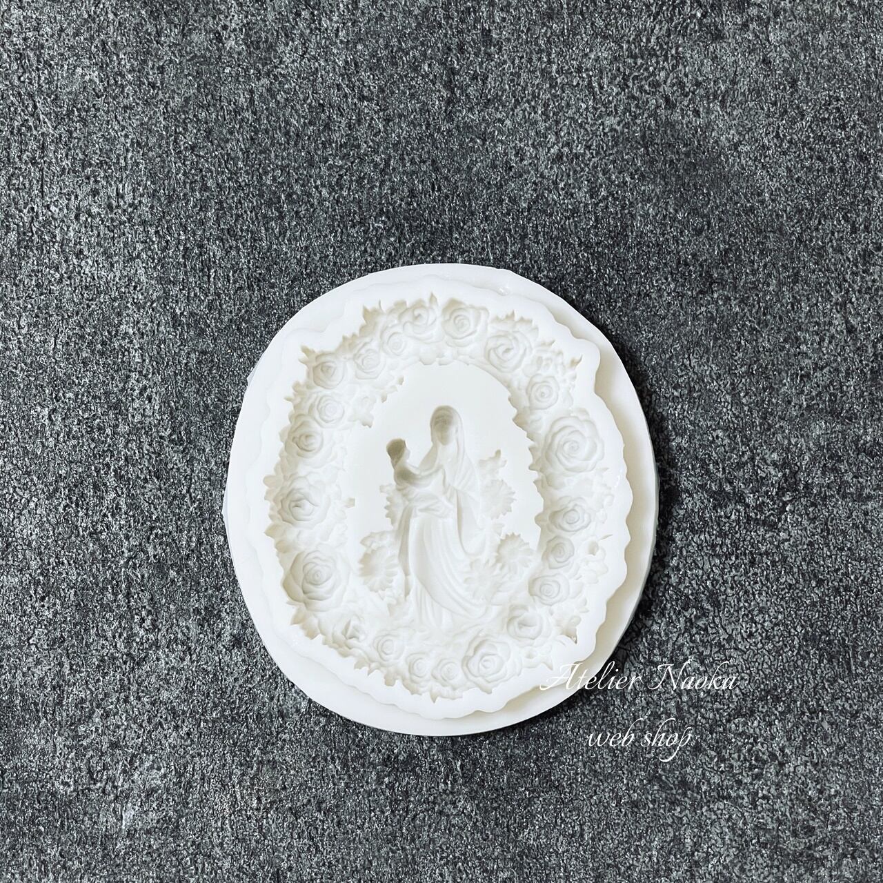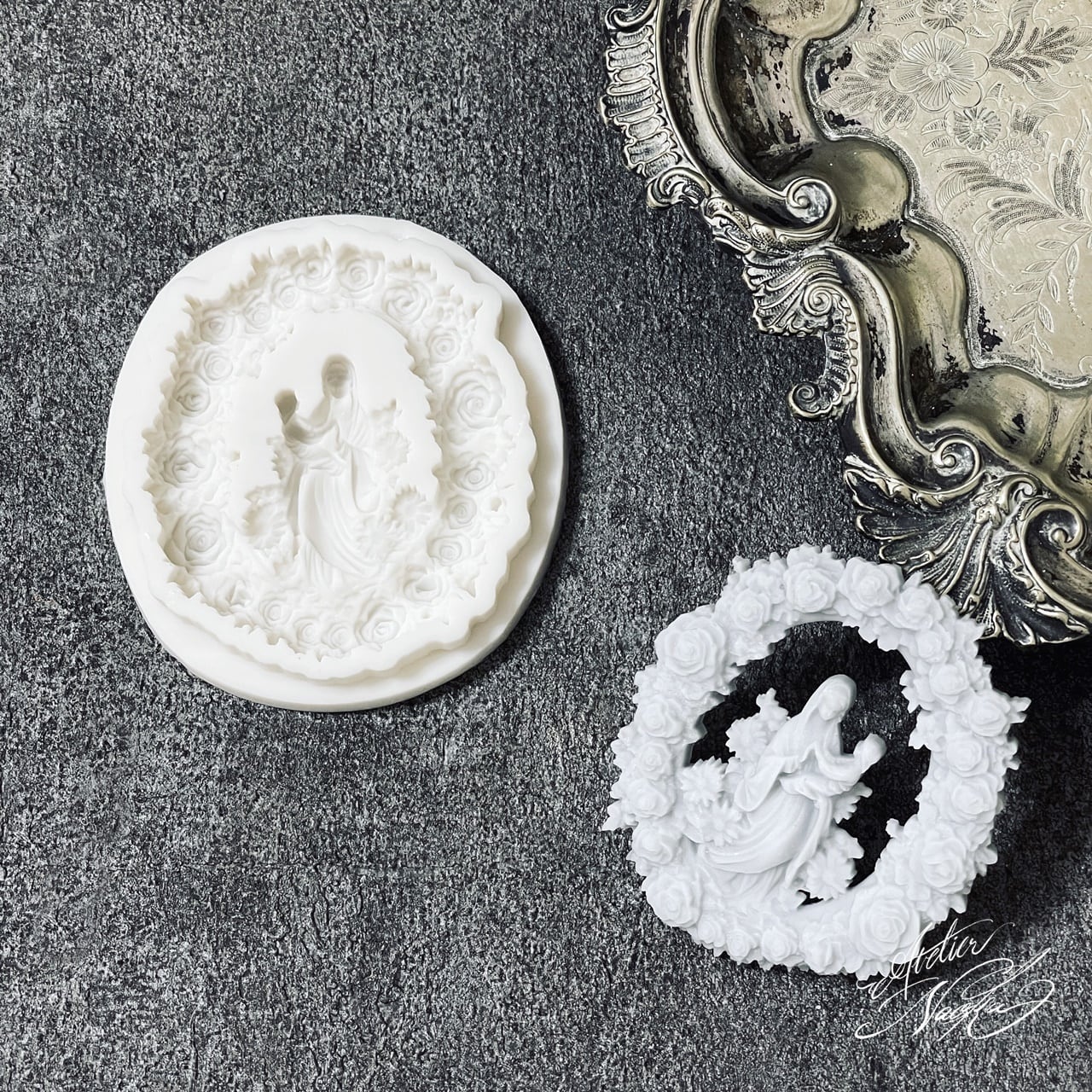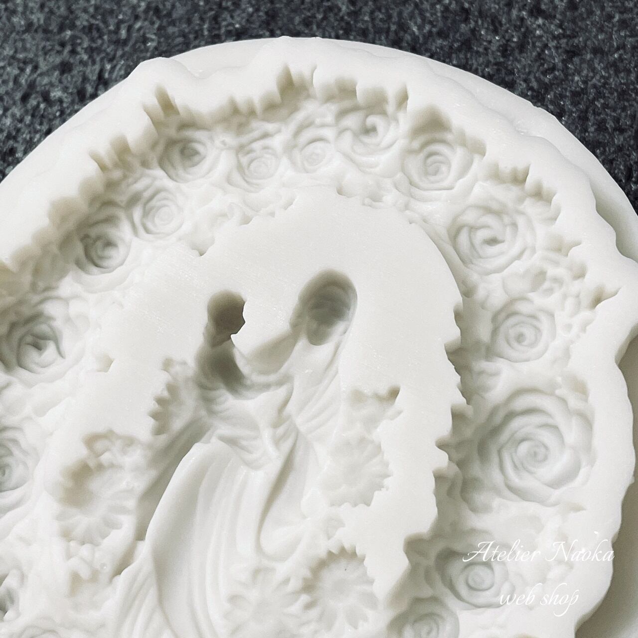 薔薇に囲まれたマリア母子像のシリコンモールドです✞