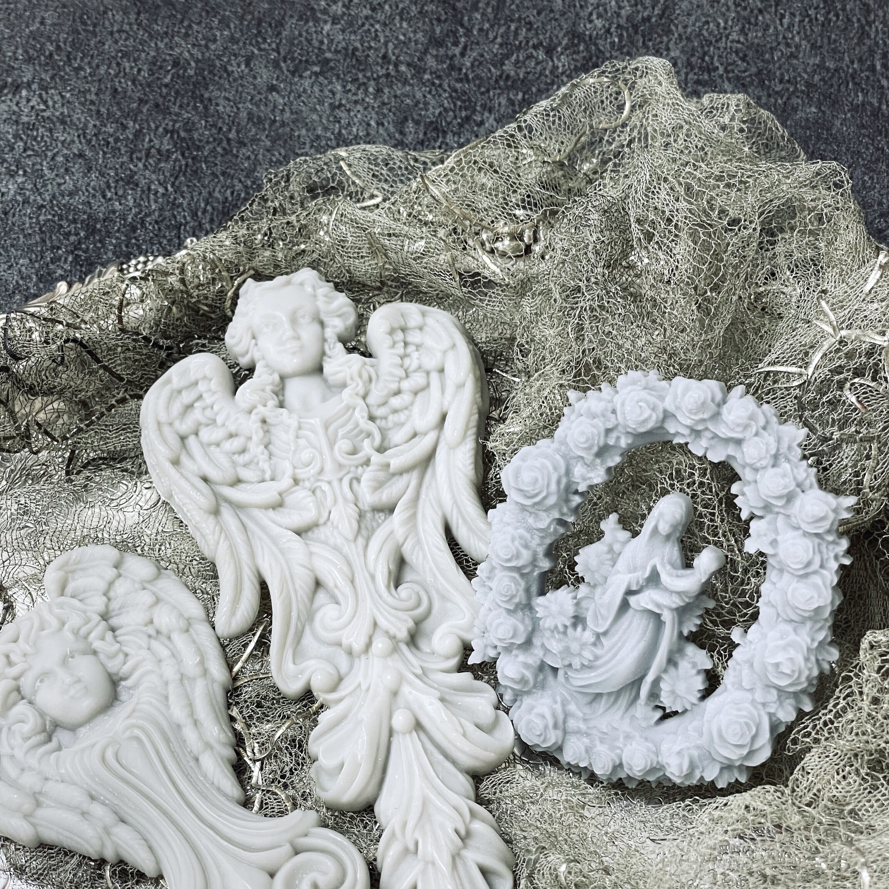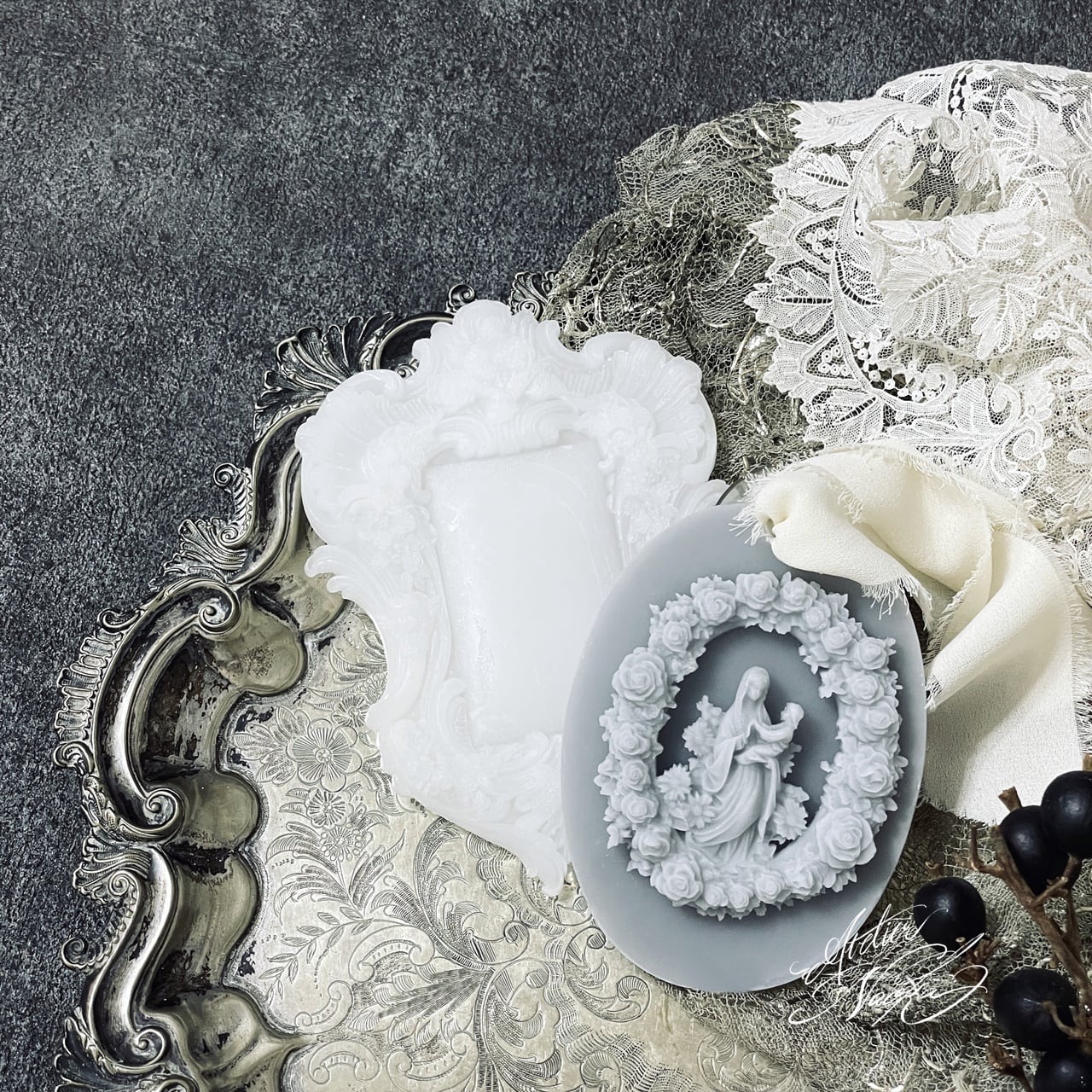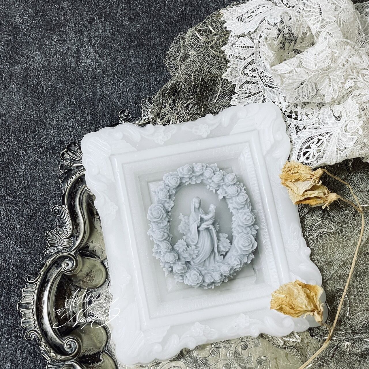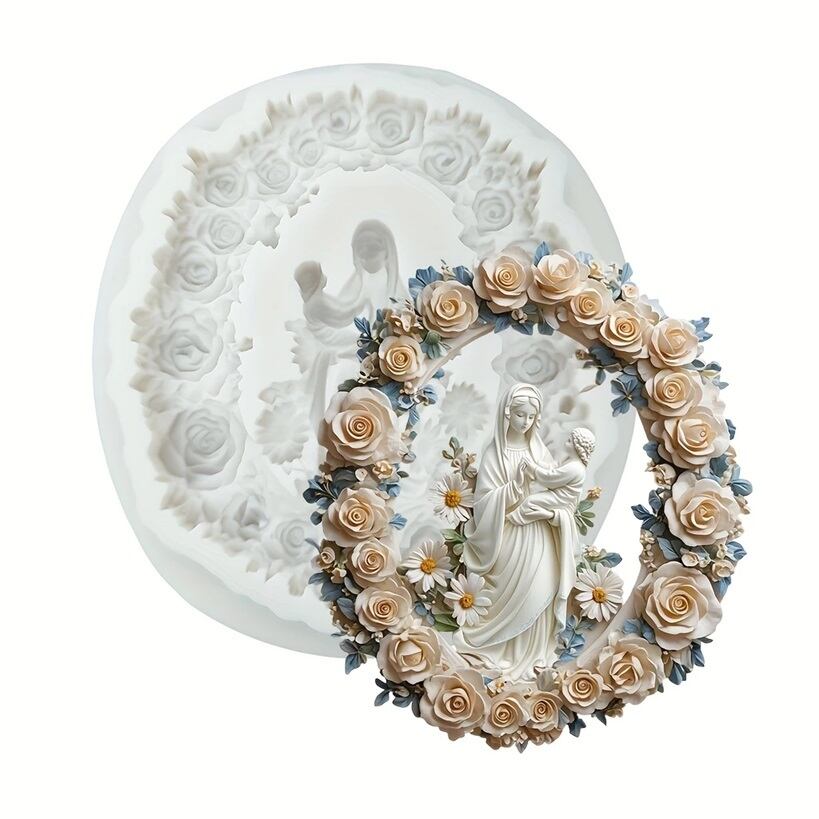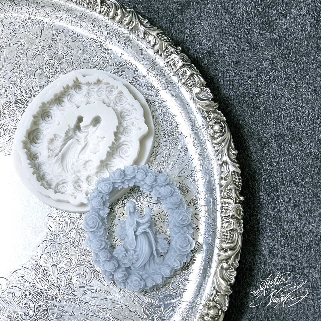薔薇に囲まれたマリア母子像のシリコンモールドです✞