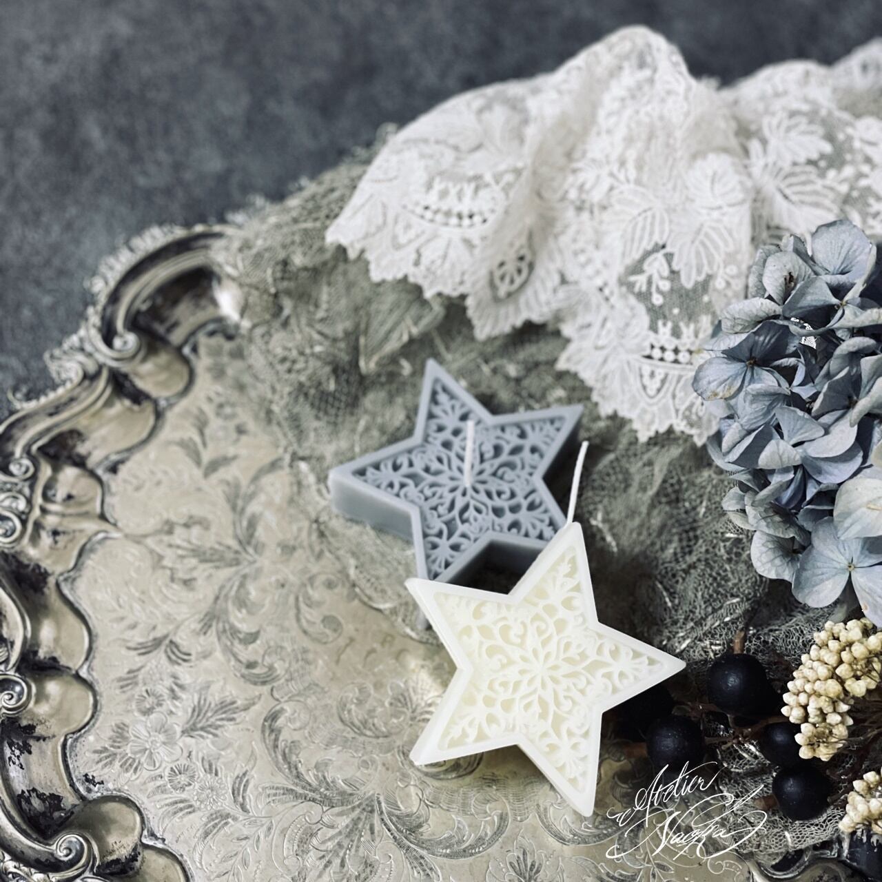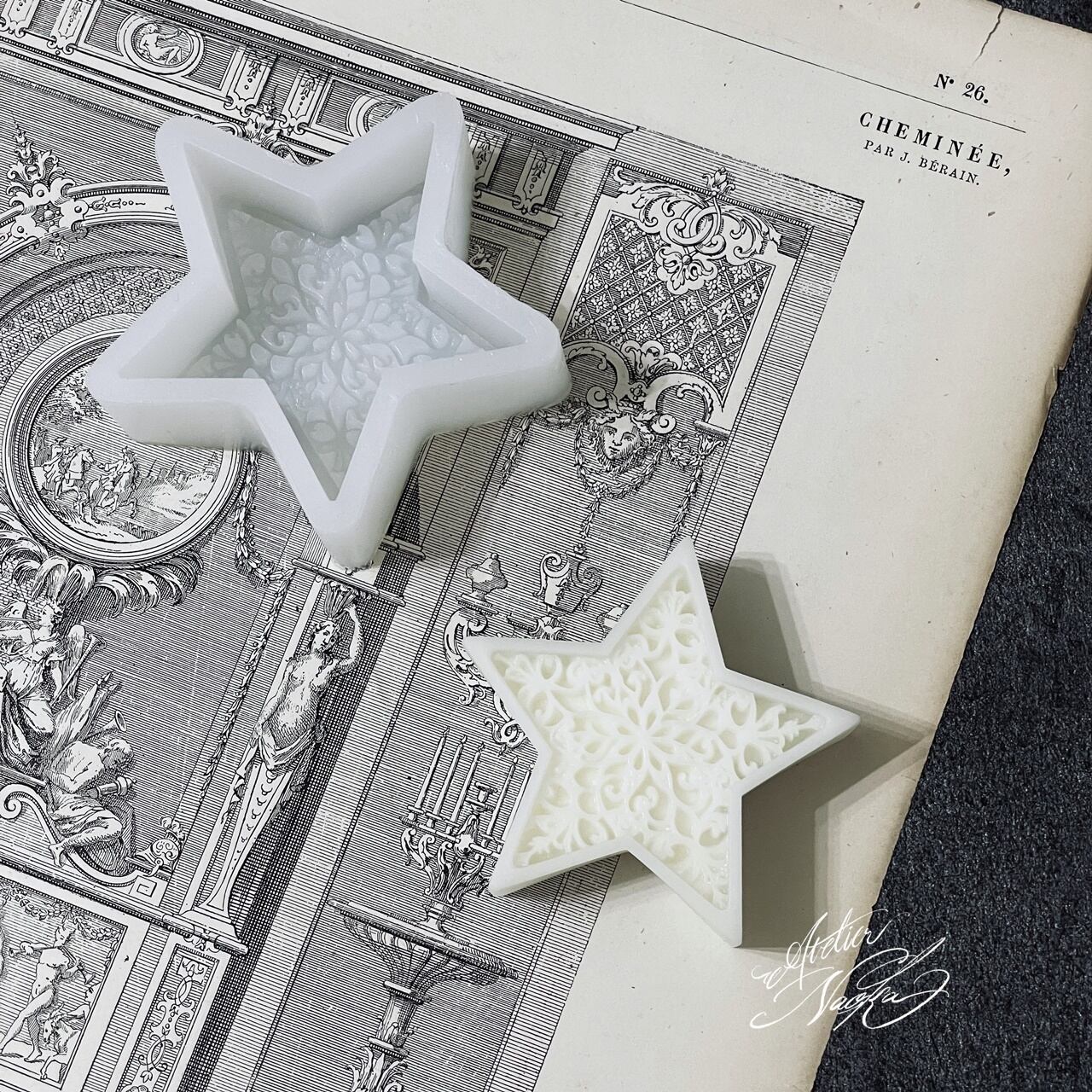 星型ベースに美しいレリーフが施されたシリコンモールドです。