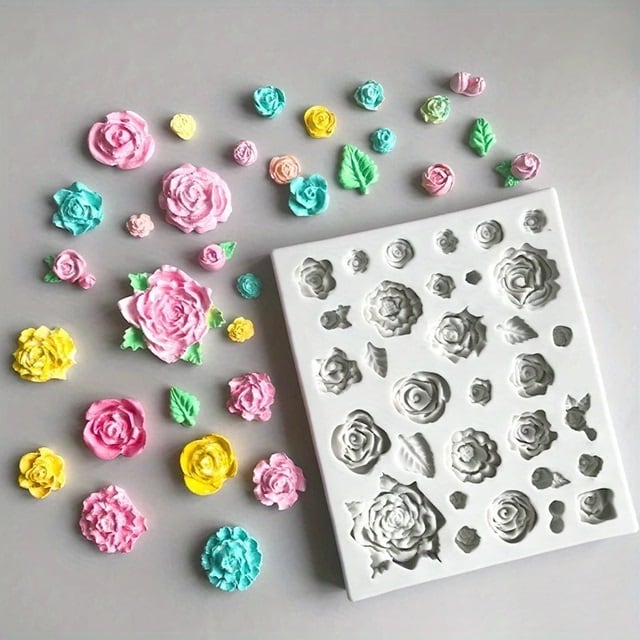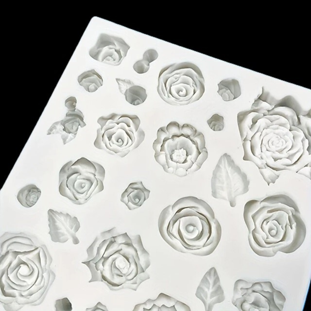 32種類の薔薇とリーフがSETになったシリコンモールドです。