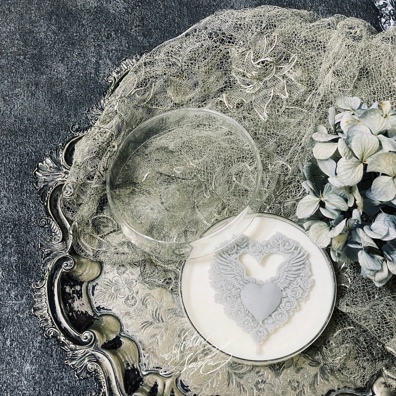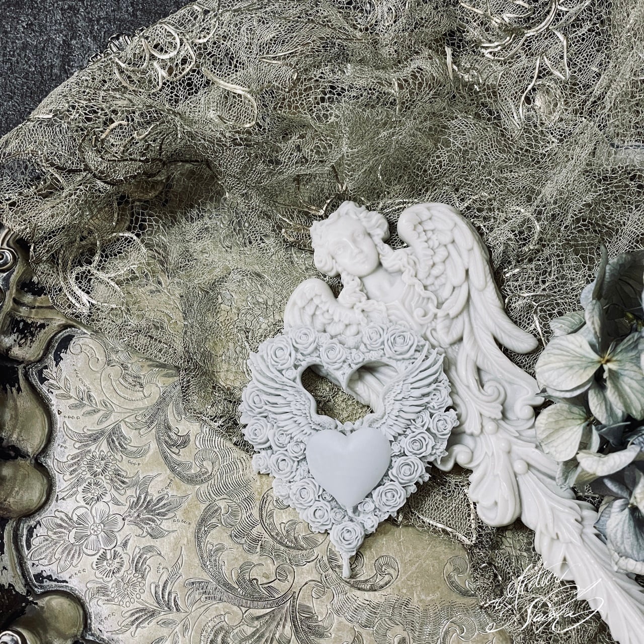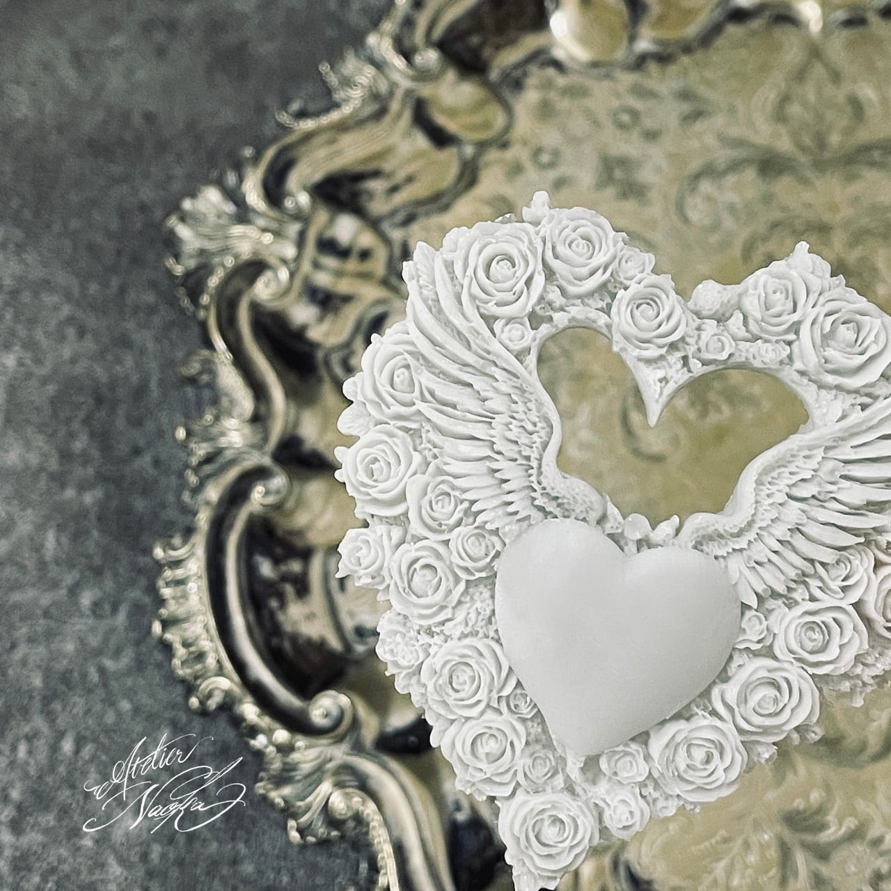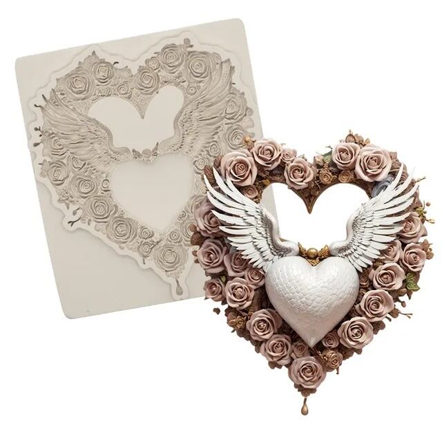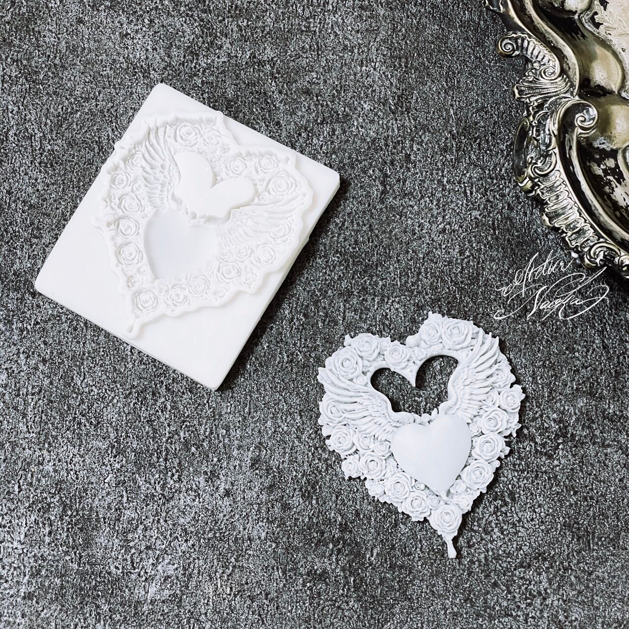 美しい翼とハートローズモチーフの シリコンモールドです。