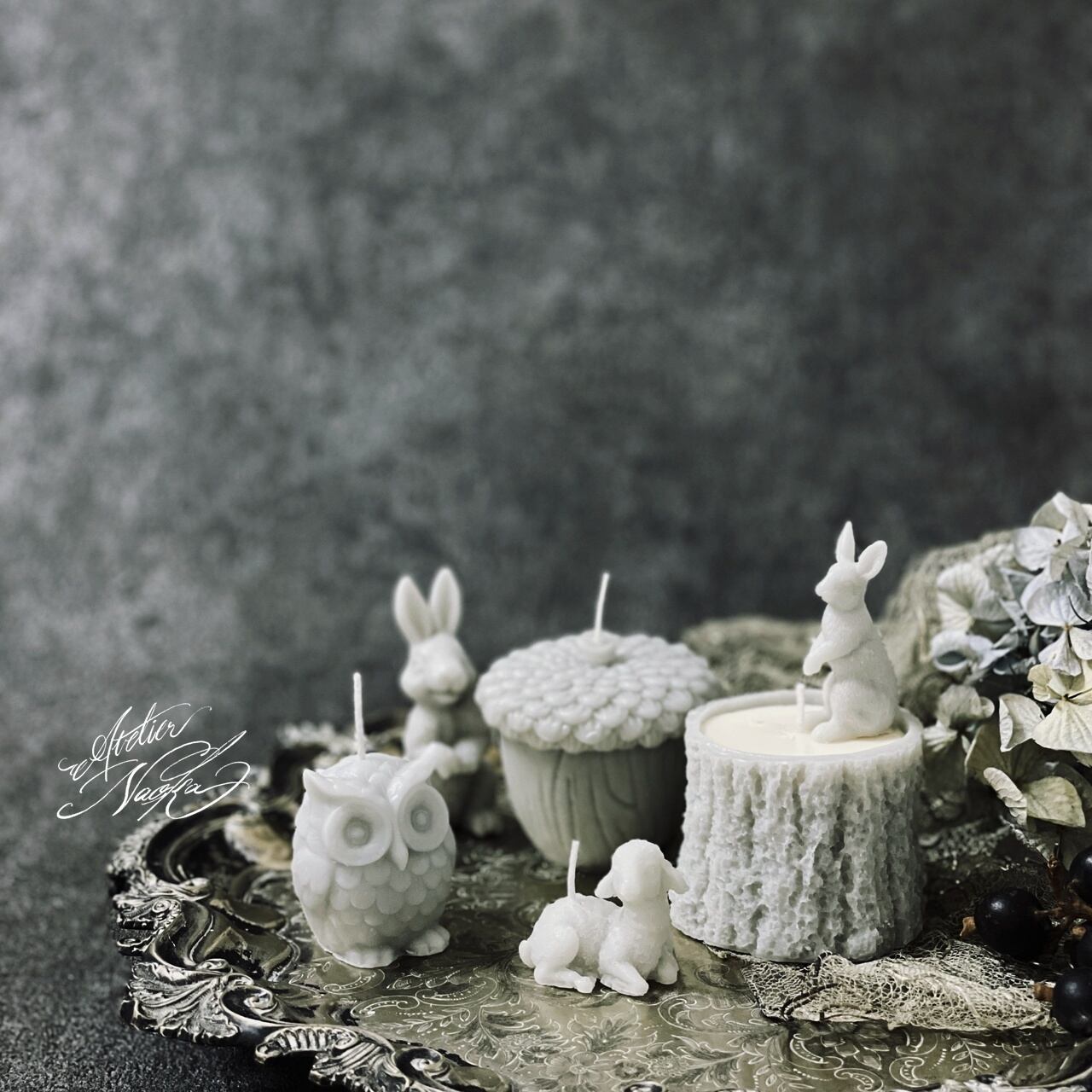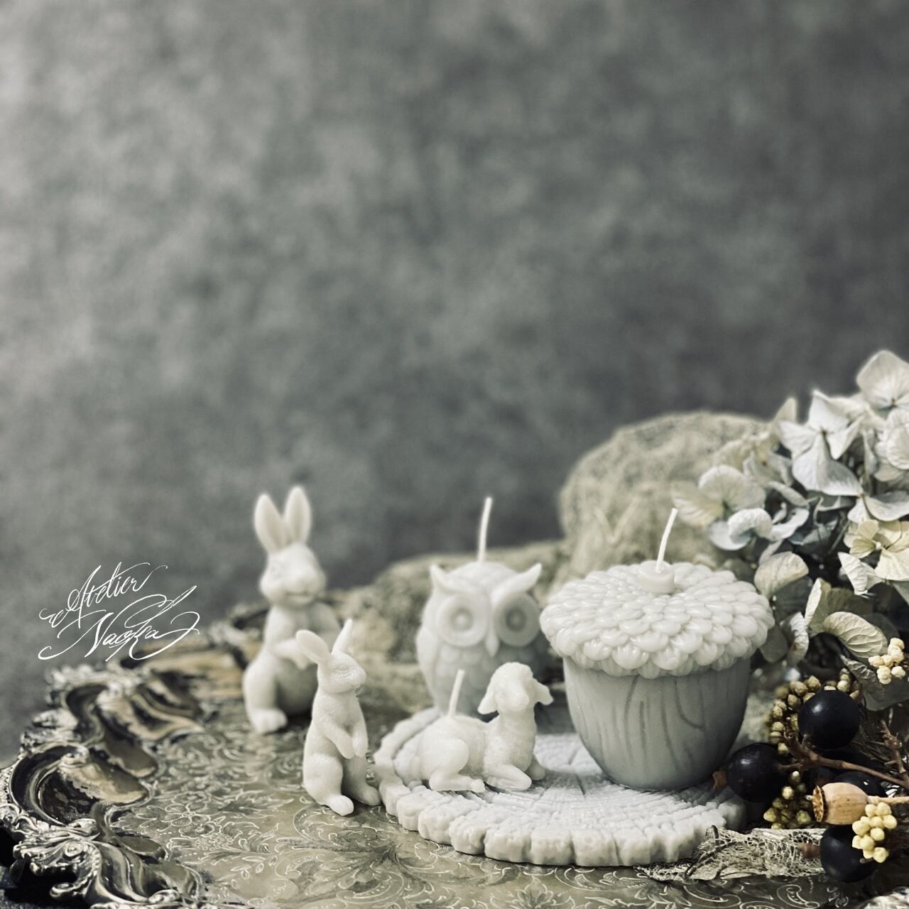 動物や木の実、切り株と一緒にデコレーションされても♪