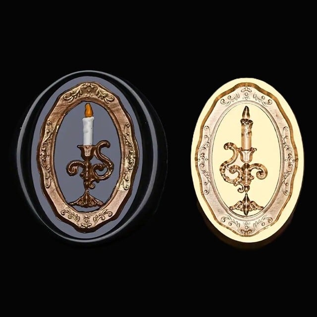 美しいフレームの中にキャンドルが描かれたシーリングスタンプです。