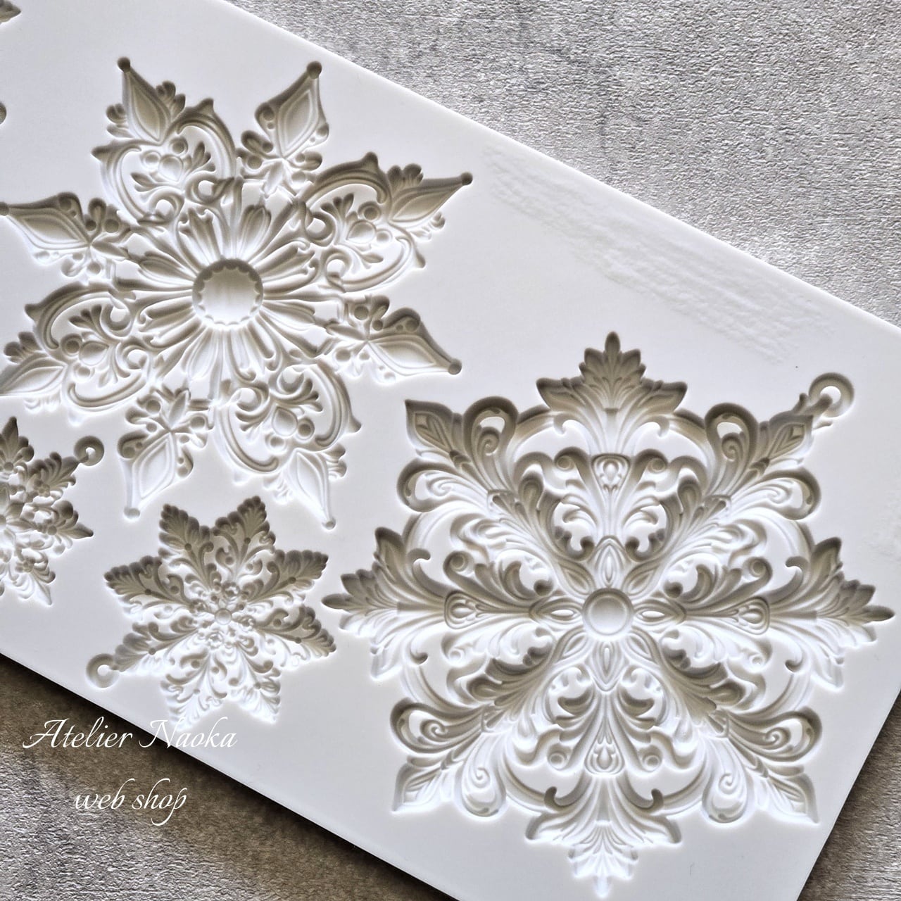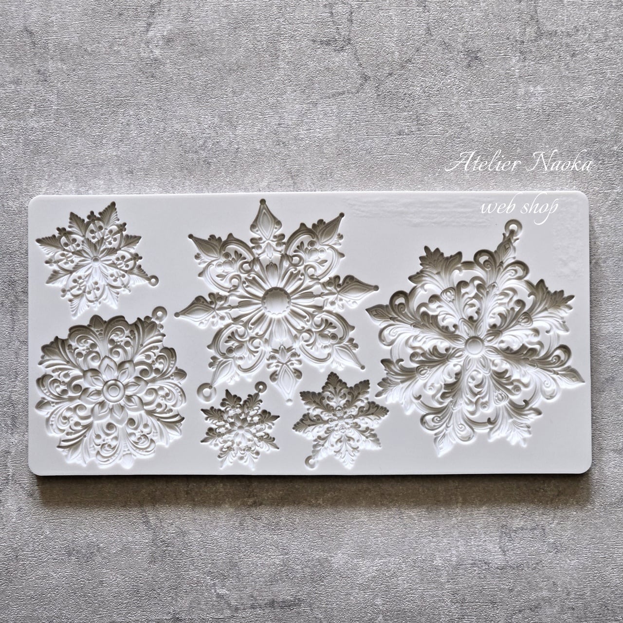 6種類の雪の結晶型がセットになったシリコンモールドです。