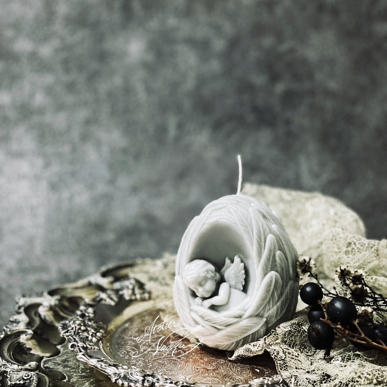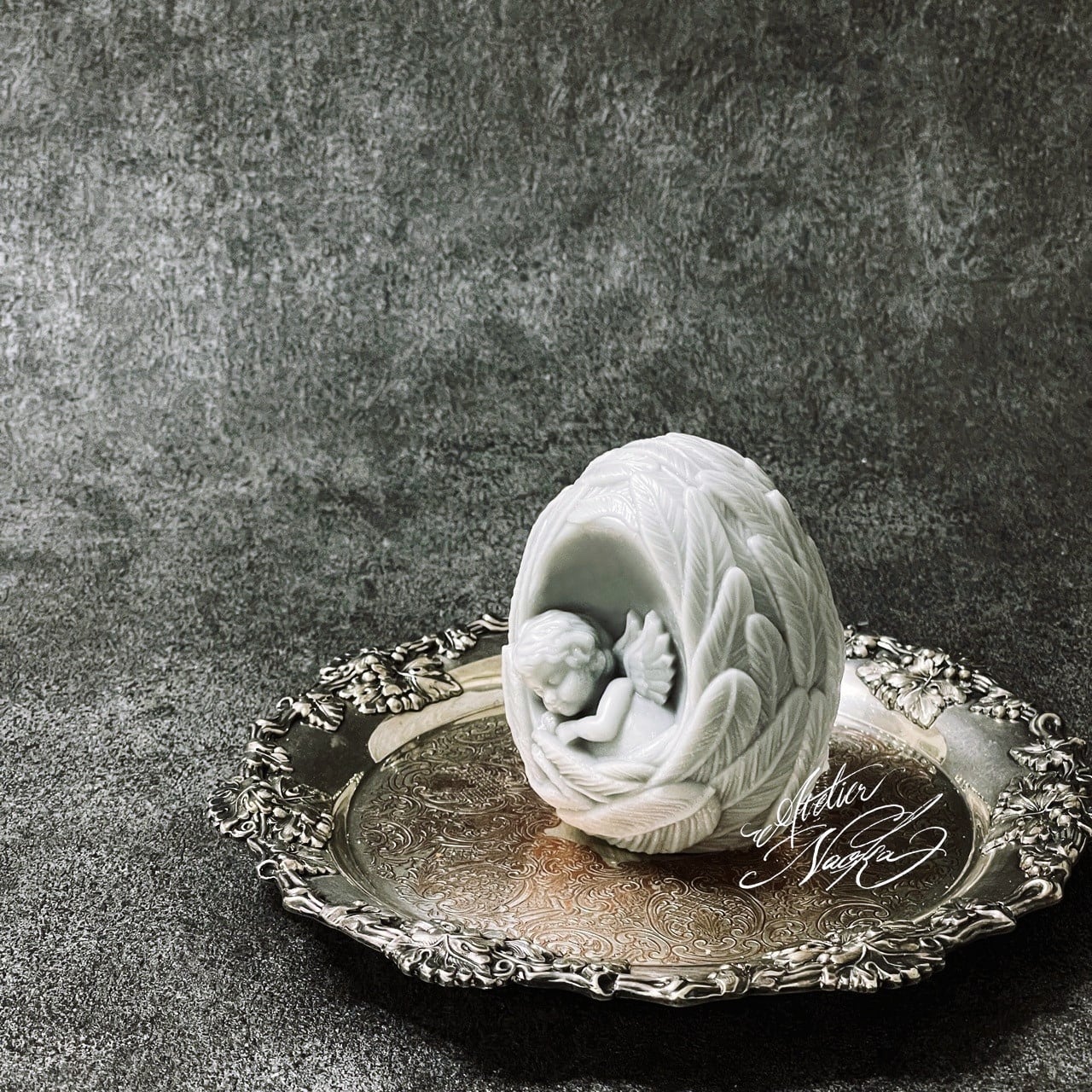 中に天使が眠った素敵なシリコンモールドです。