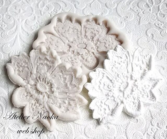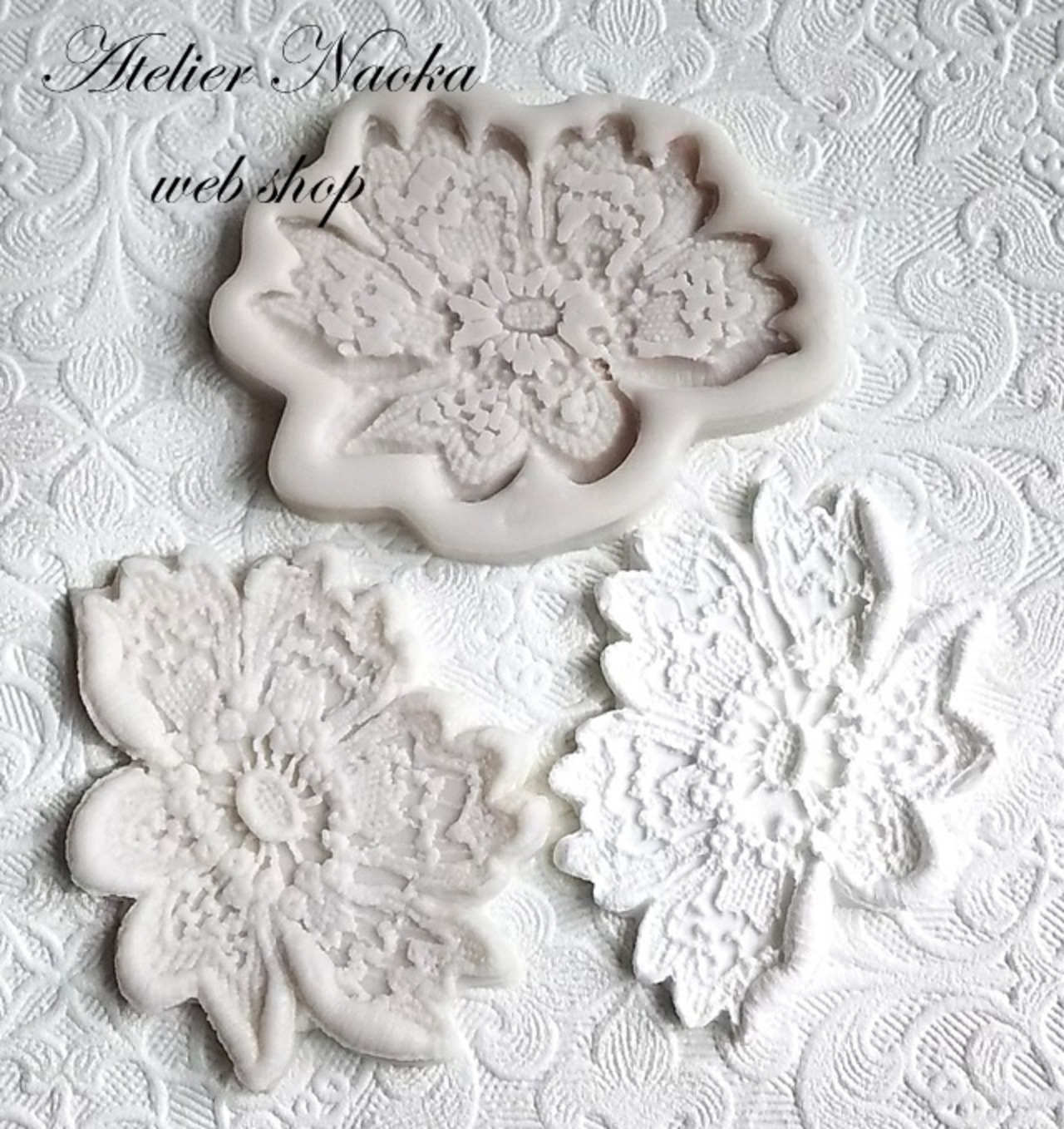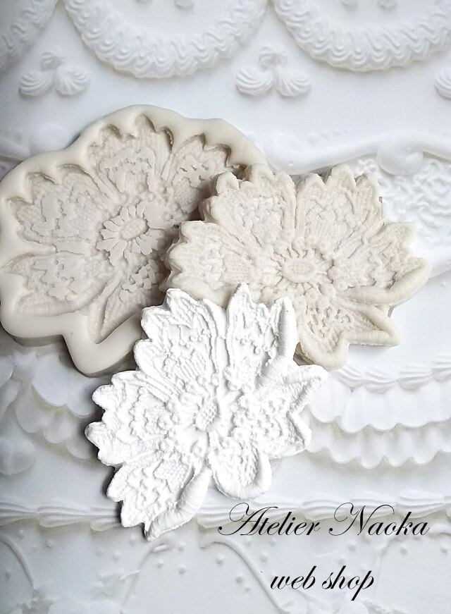 アンティークな雰囲気のフラワーレースシリコンモールドです。