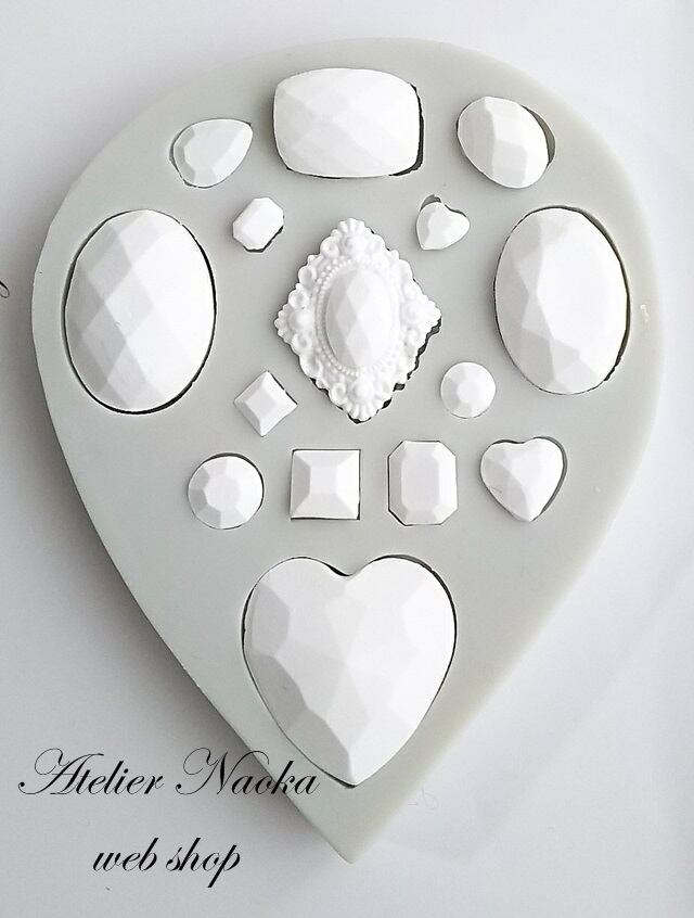 仕上がりサイズ:中心ジュエリー約2.6cm×2.2cm、下ハート約2.5cm×2.7cm