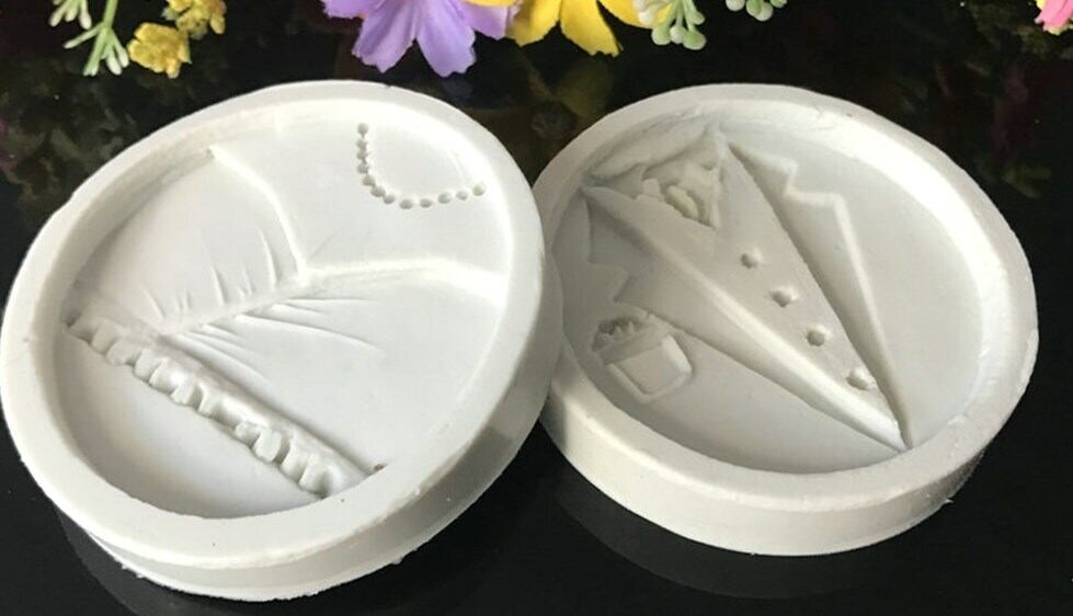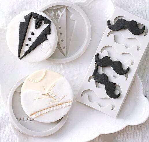 ウェディングドレス、タキシード、ひげの シリコンモールドです。