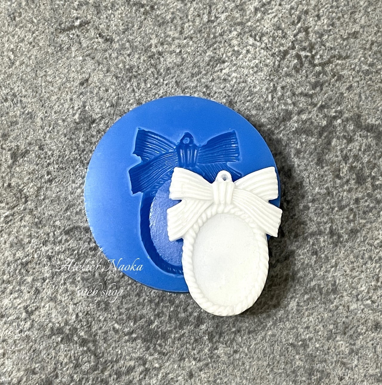 リボンが付いた可愛いオーバルフレームのシリコンモールドです。