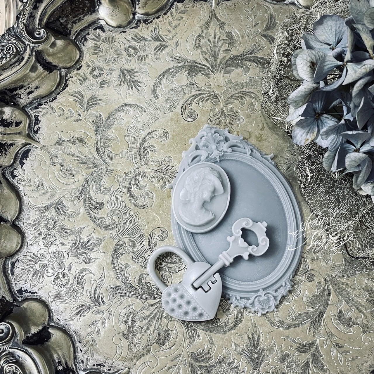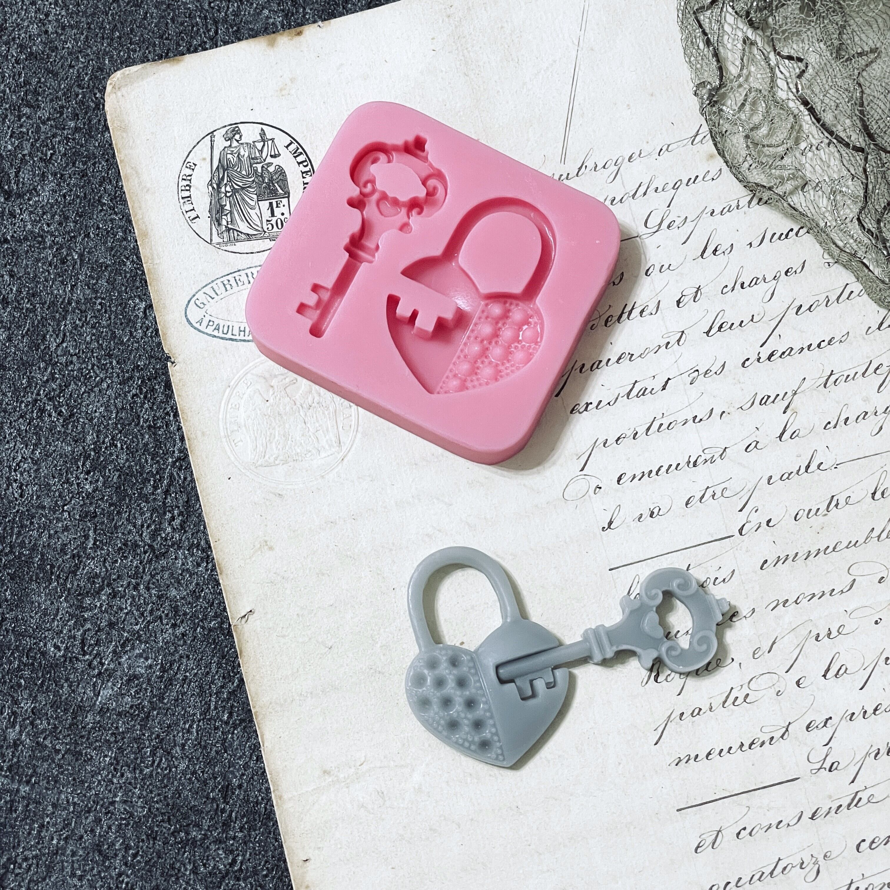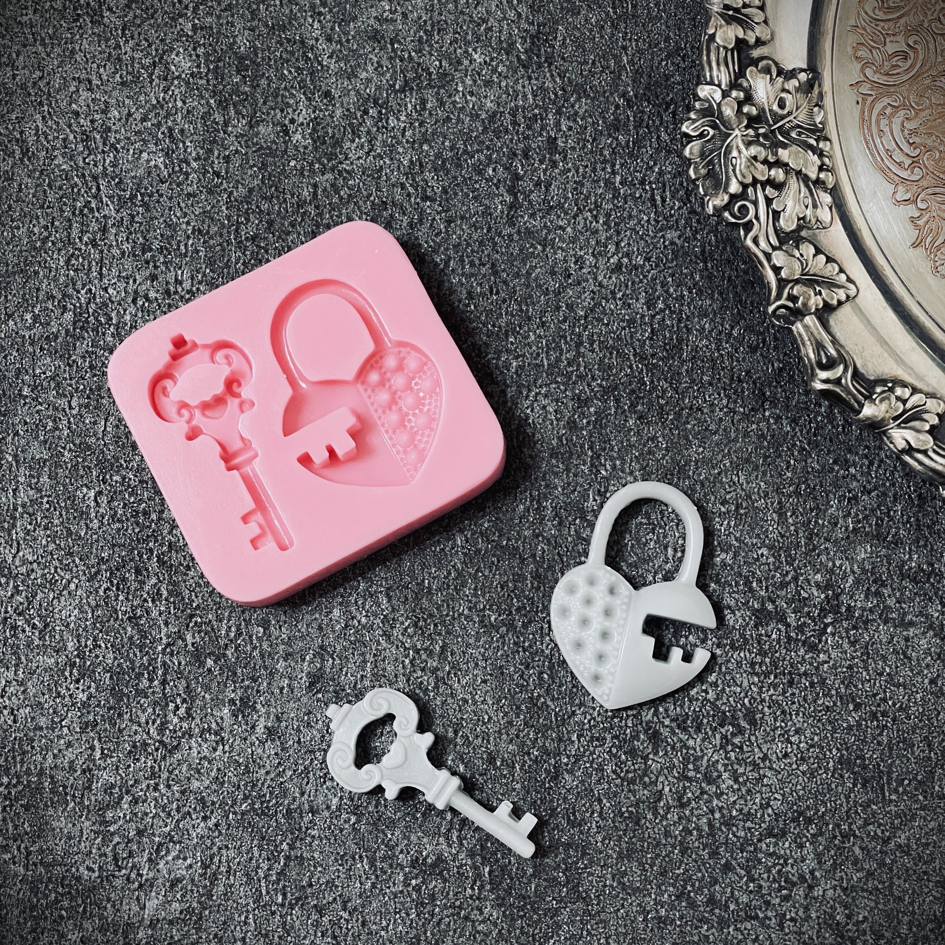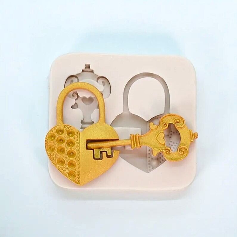 鍵とハートの錠がSETになったシリコンモールドです。