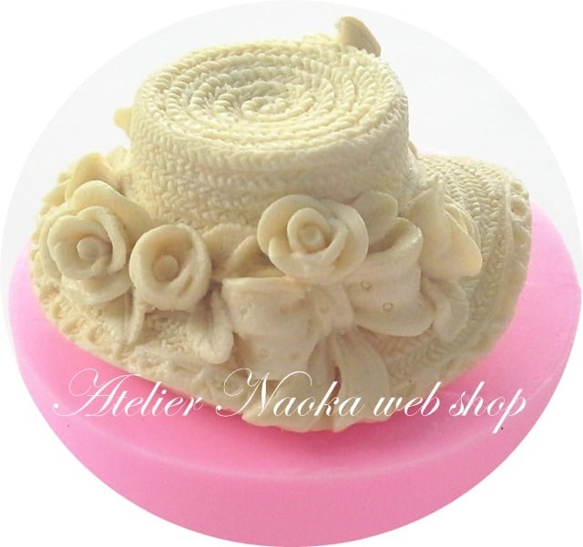 薔薇とリボンが付いた可愛い帽子のシリコンモールドです。