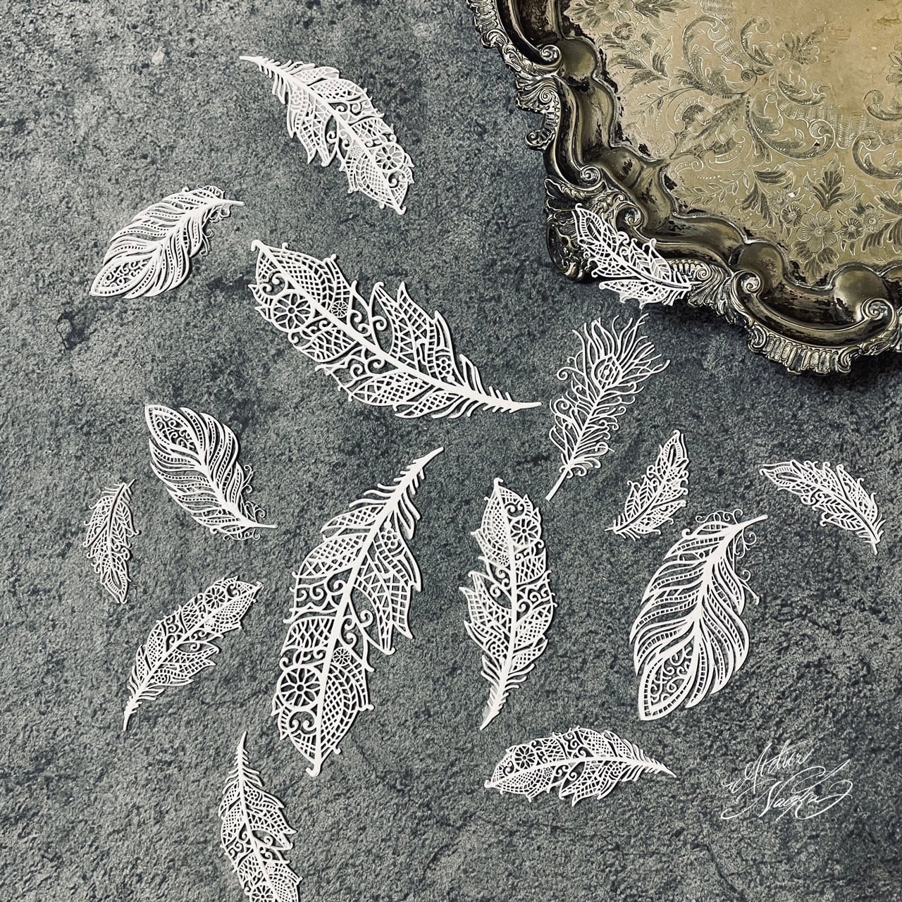 フェザー羽根のレースマットシリコンモールドです。