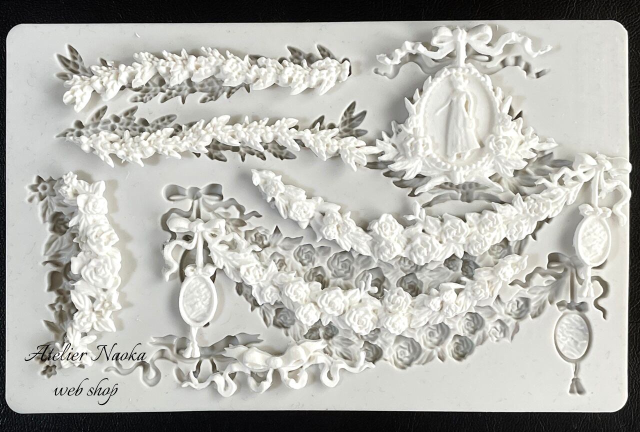 フラワーリボンガーランド&モチーフのシリコンモールドです。