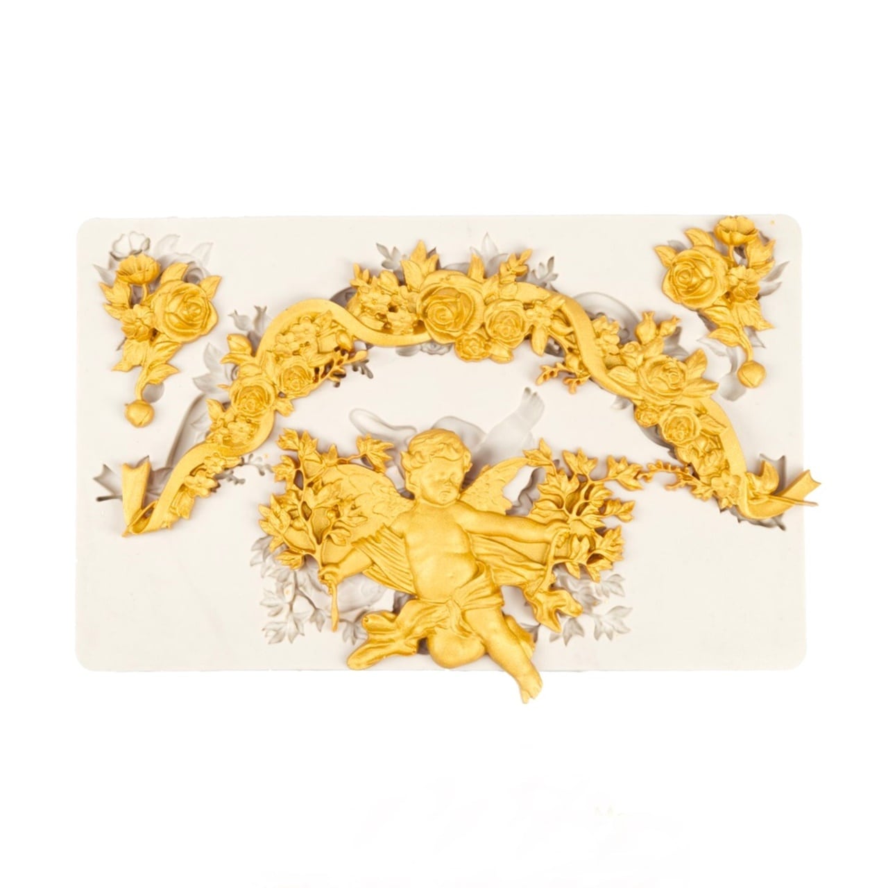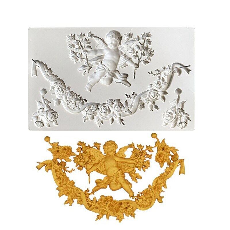 天使とローズガーランド、スワッグモチーフのシリコンモールドです。