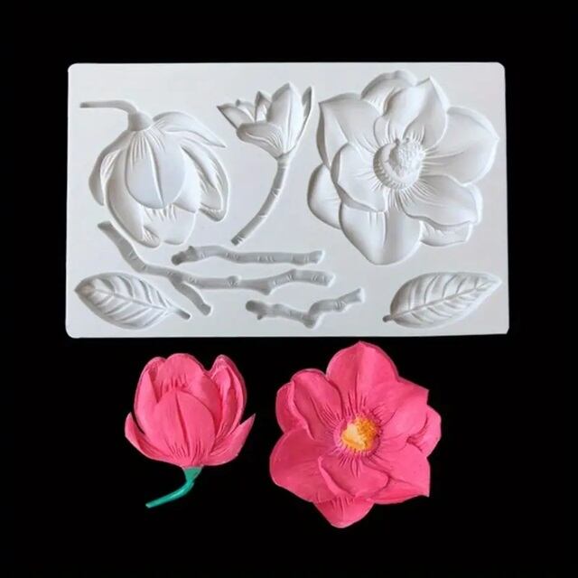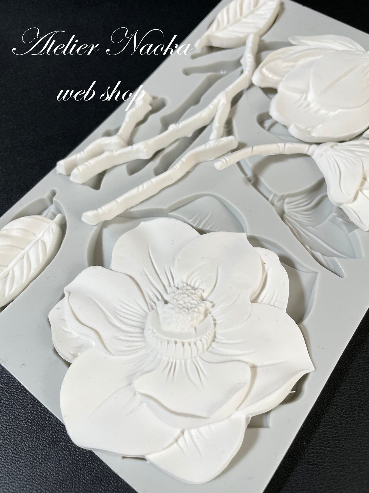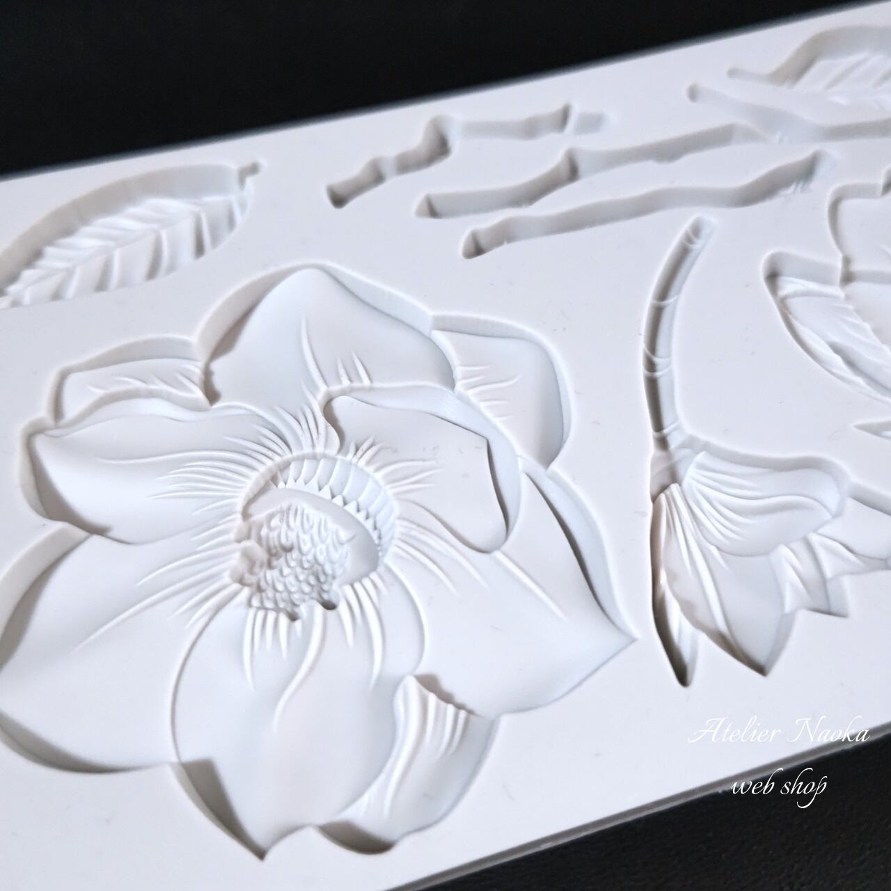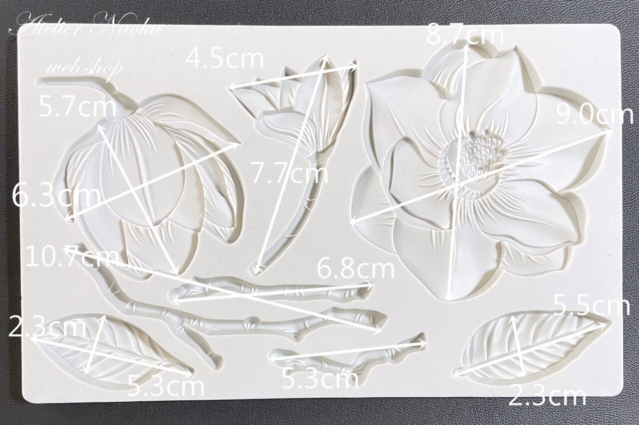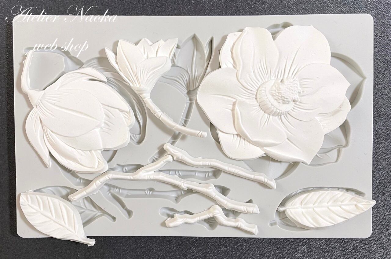 フラワーと葉がSETになったシリコンモールドです。