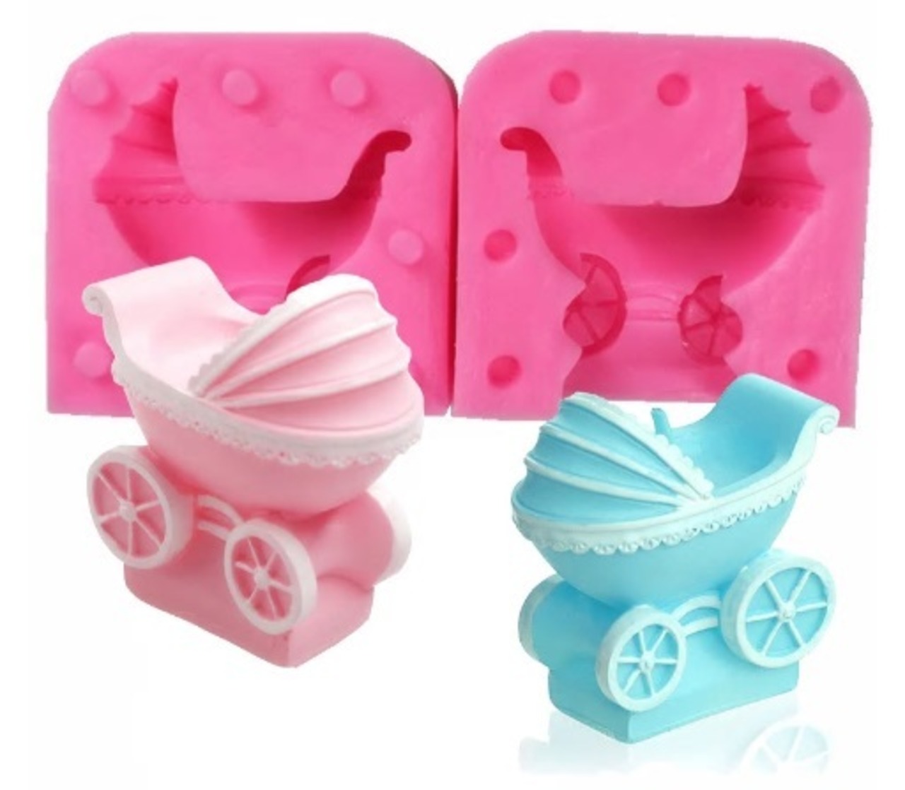 立体的に仕上がるベビーカーのシリコンモールドです。