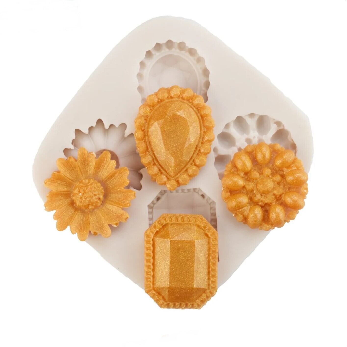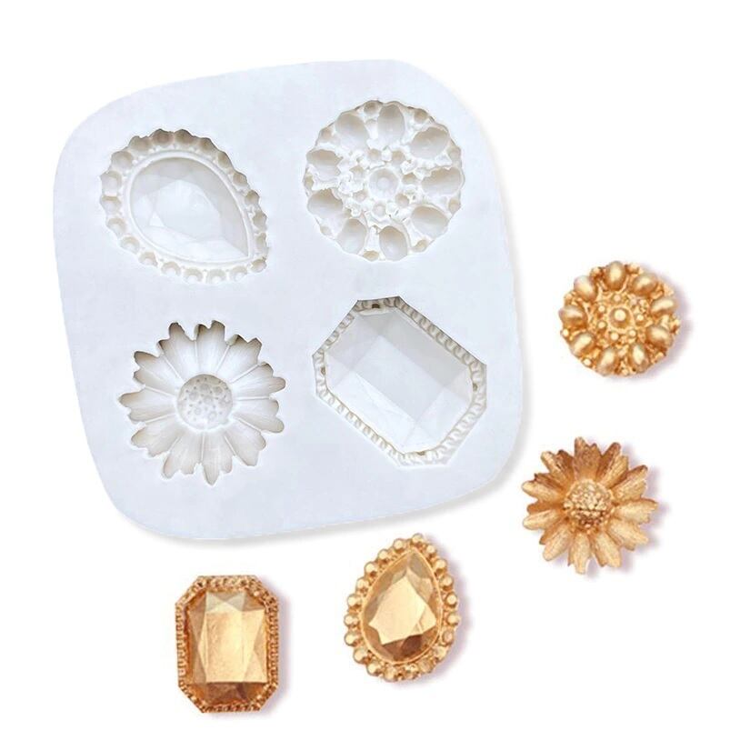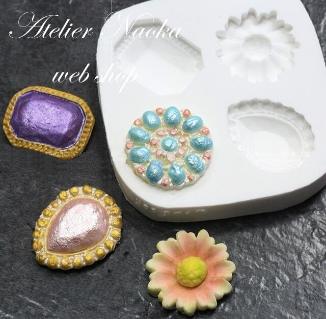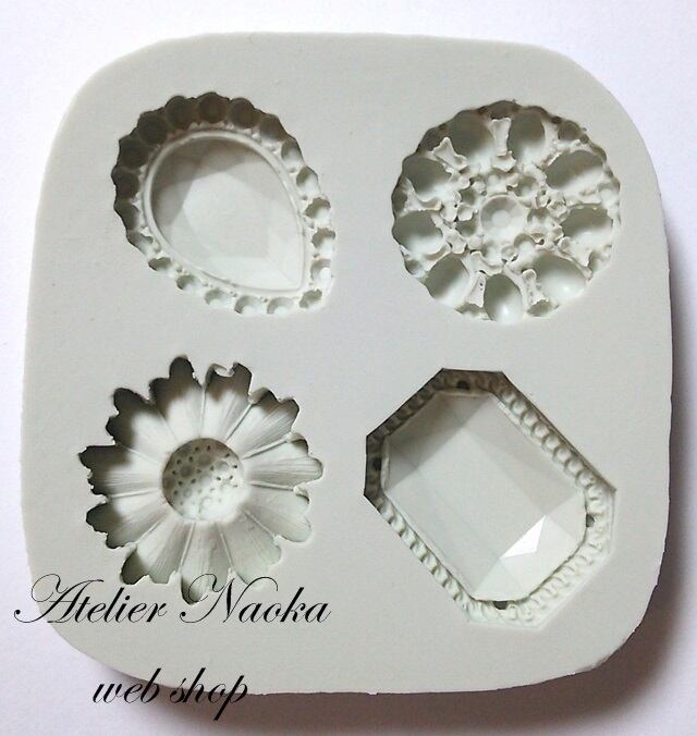 フラワーとジュエリー型の4種類がSETになったシリコンモールドです。
