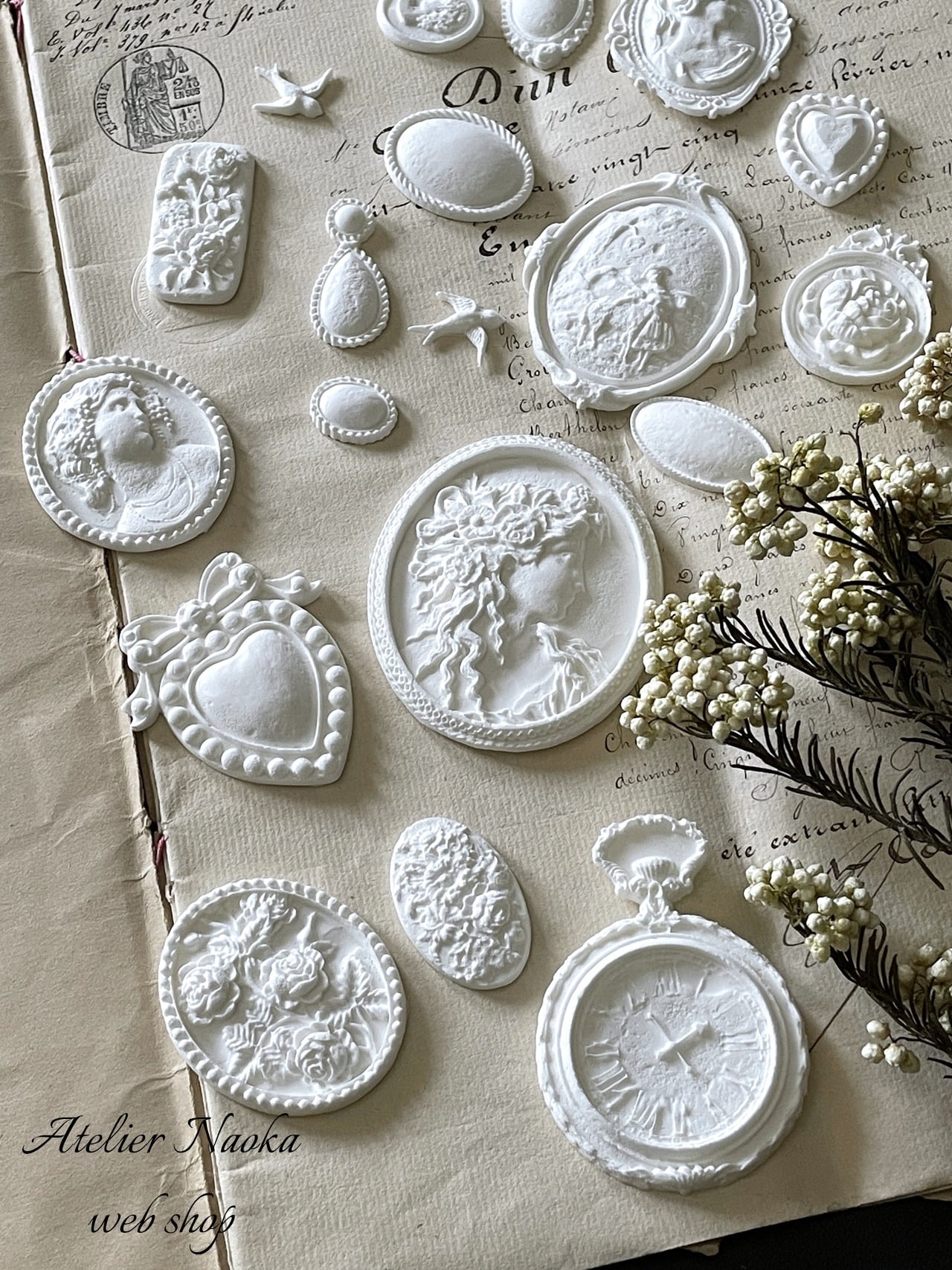 カメオ、時計、ジュエリー、モチーフ等がセットになった