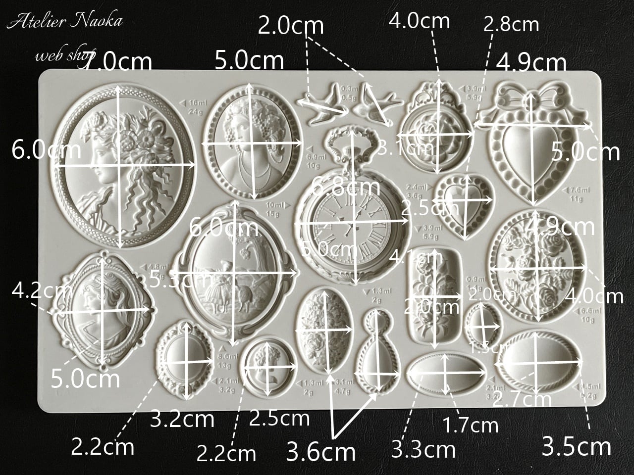 カメオ、時計、ジュエリー等 シリコンモールド