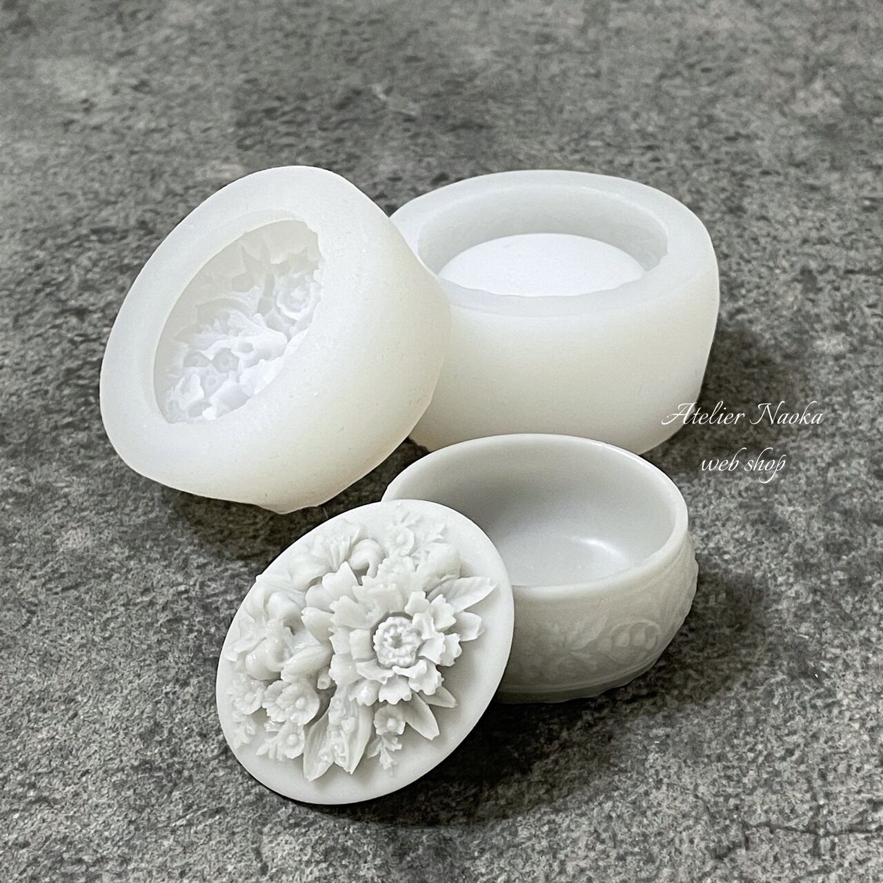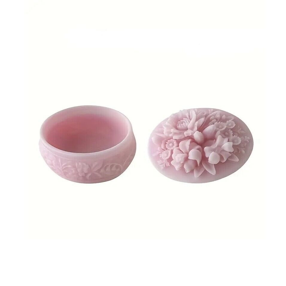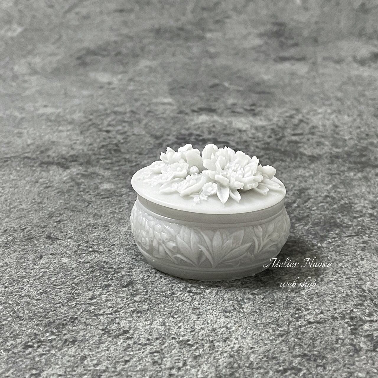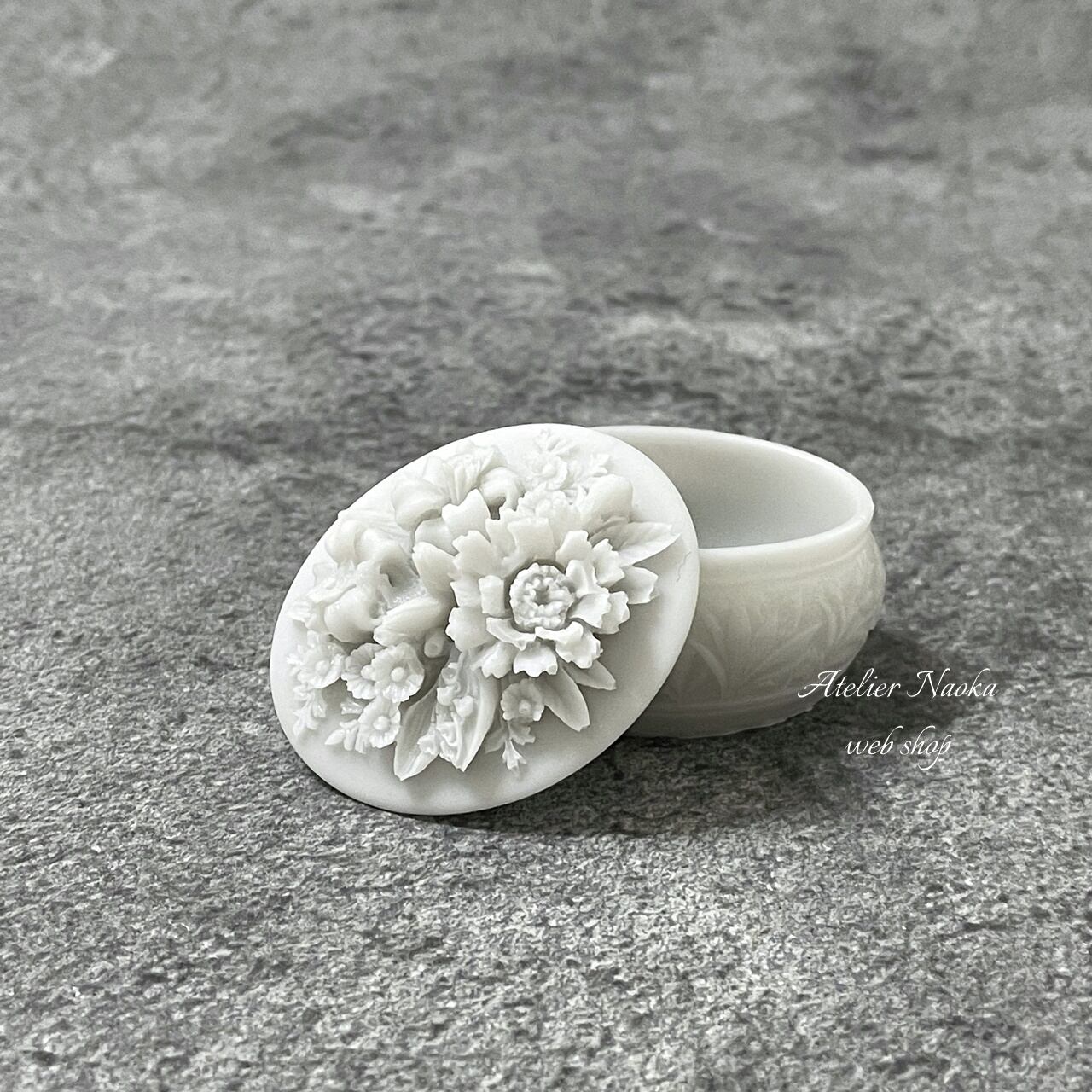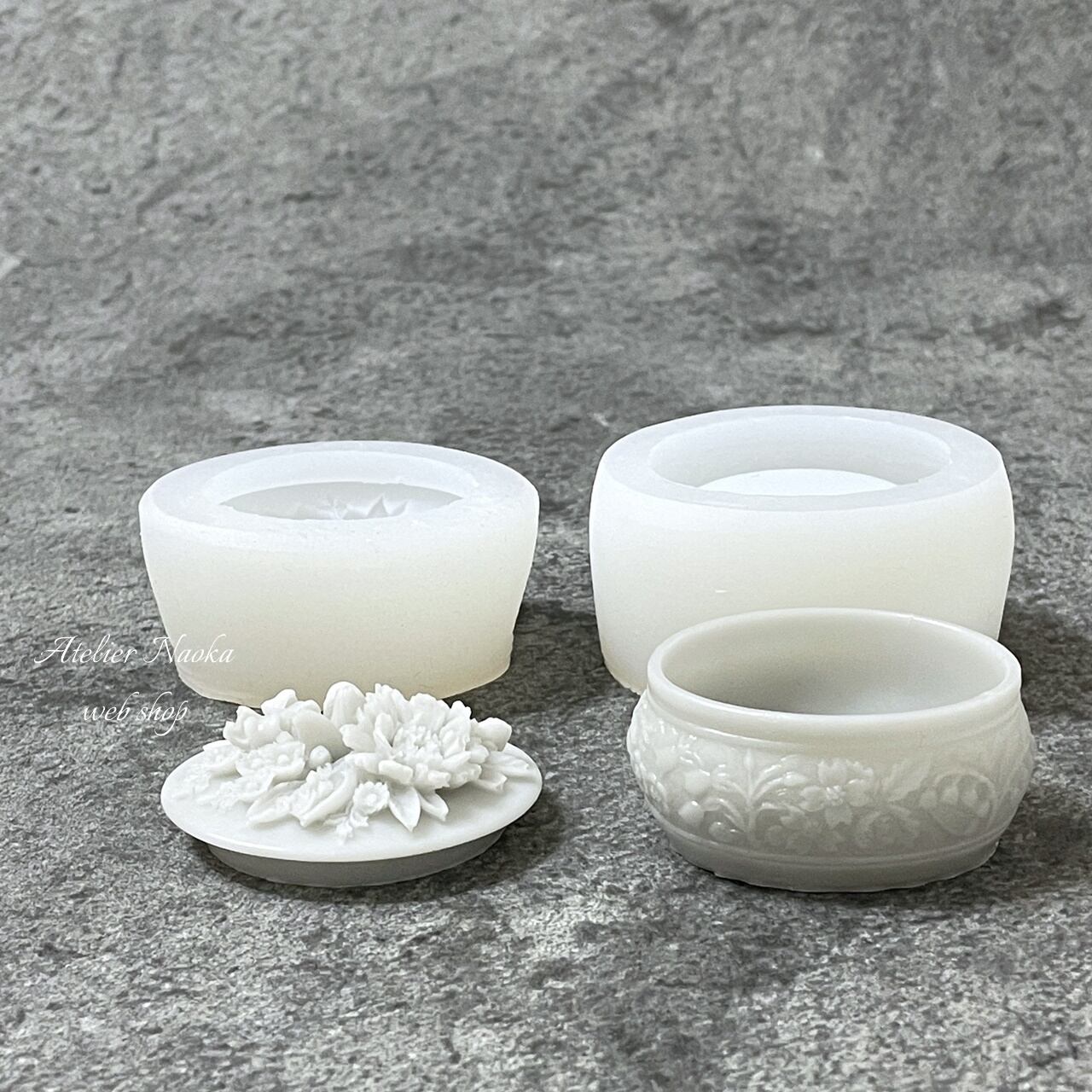 お花が施された蓋が魅力なシリコンモールドです。