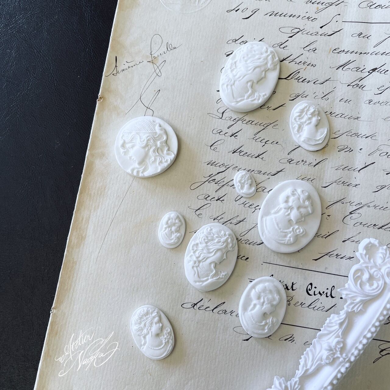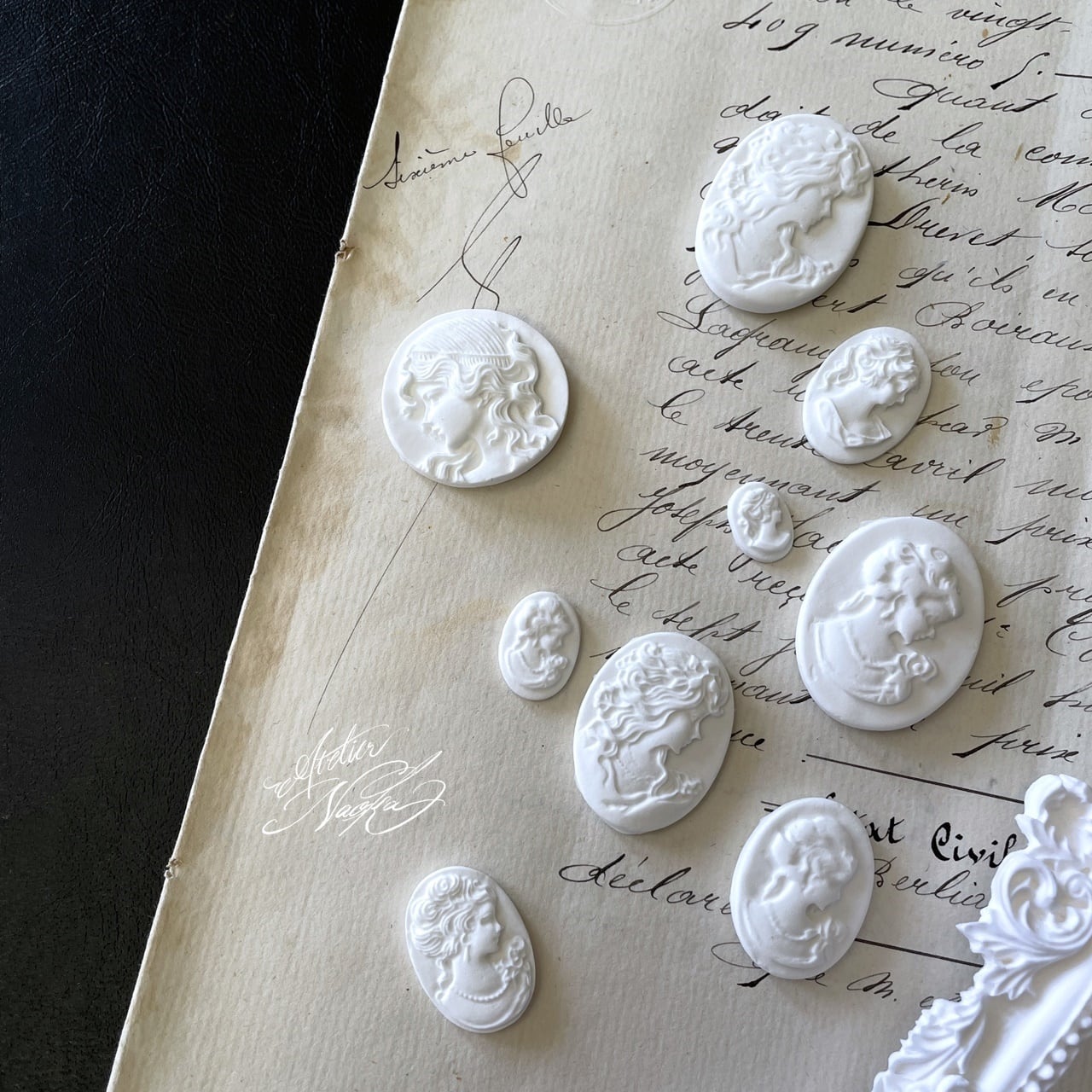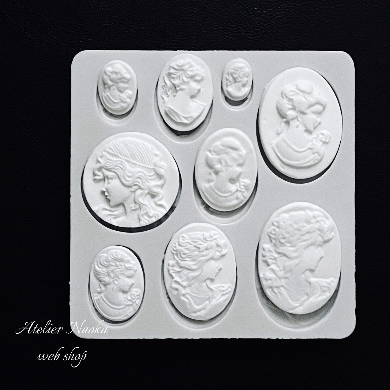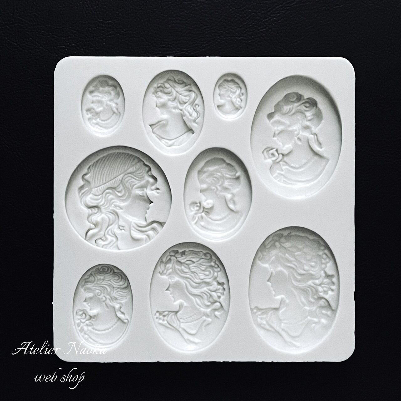 9種類の素敵なカメオが入ったシリコンモールドです。
