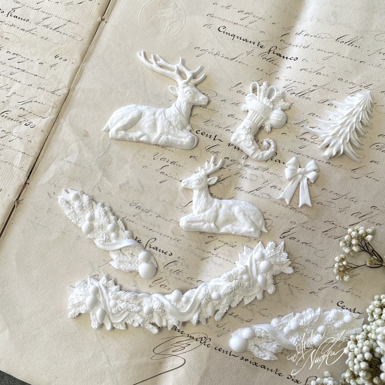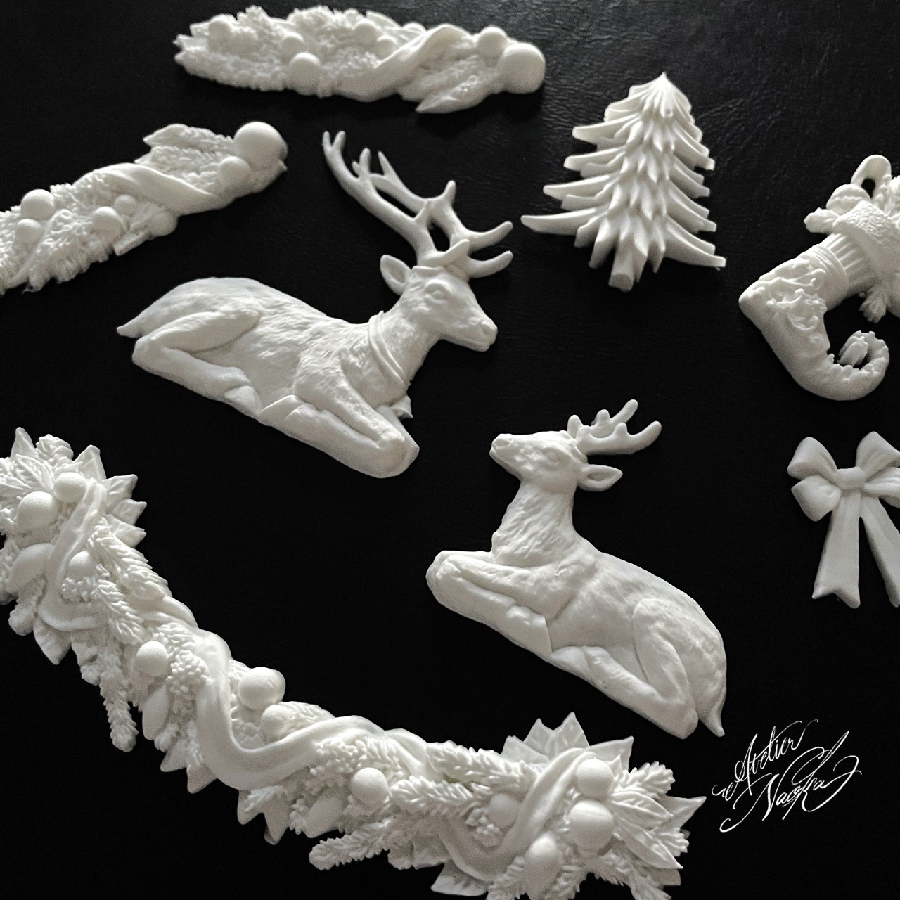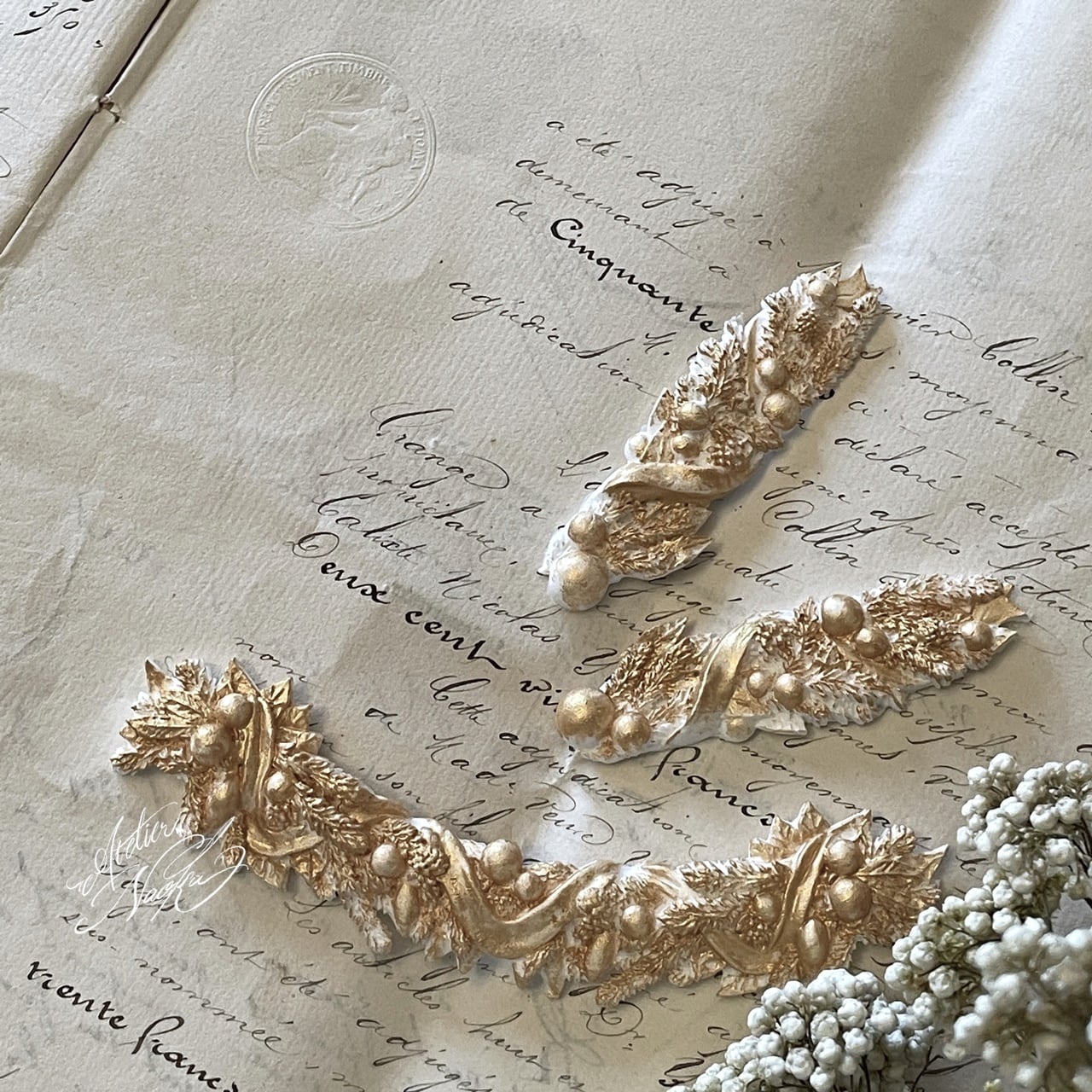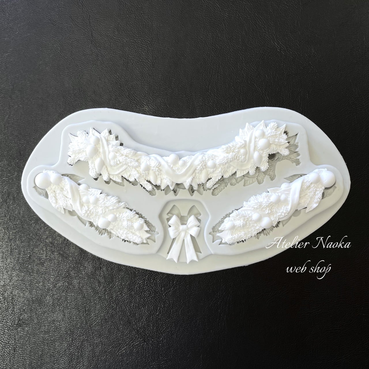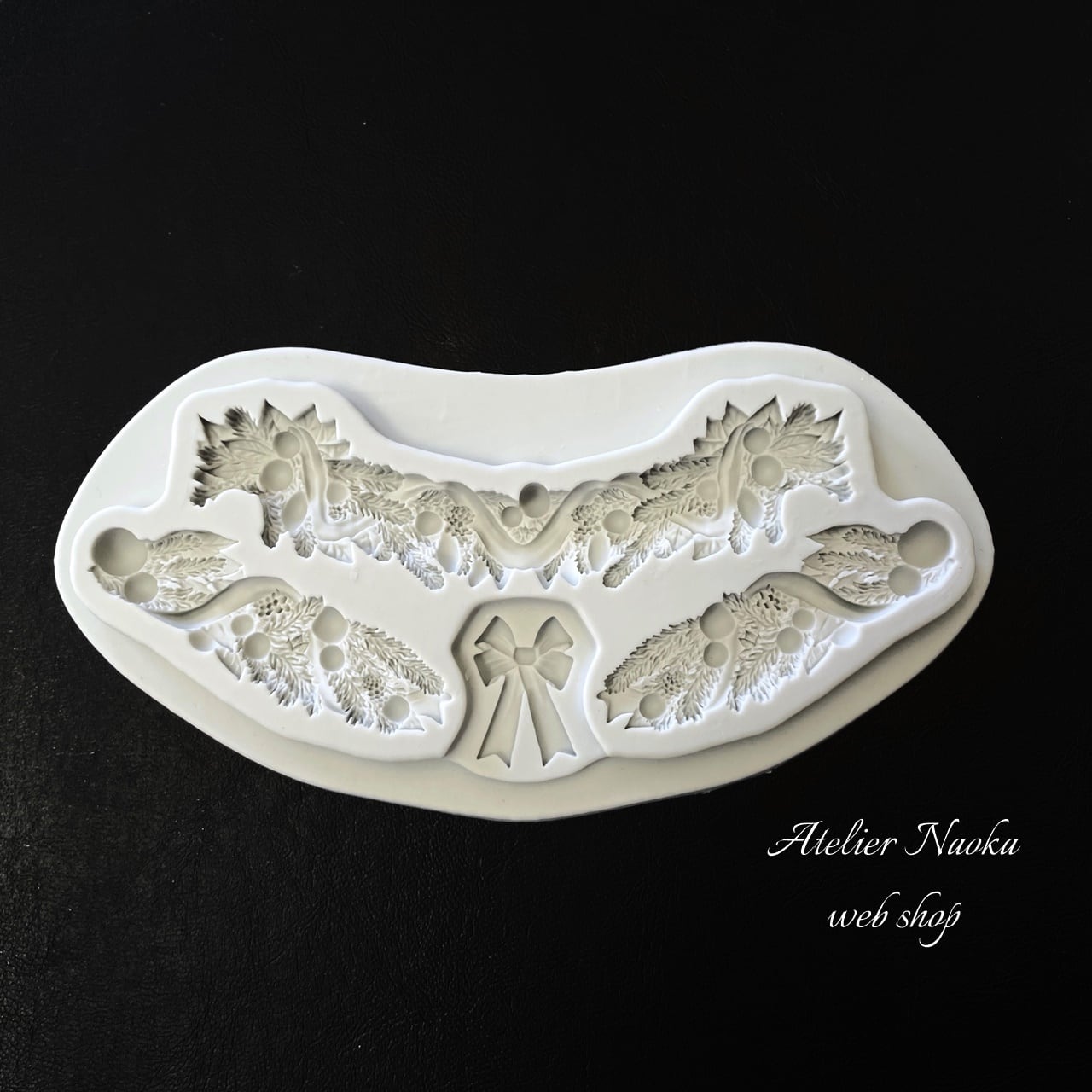 クリスマス グリーンガーランドとリボンのシリコンモールドです。