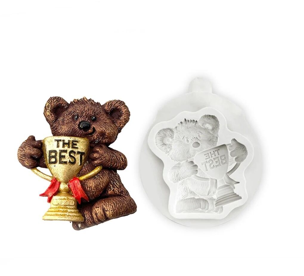 優勝カップを持ったクマのシリコンモールドです。