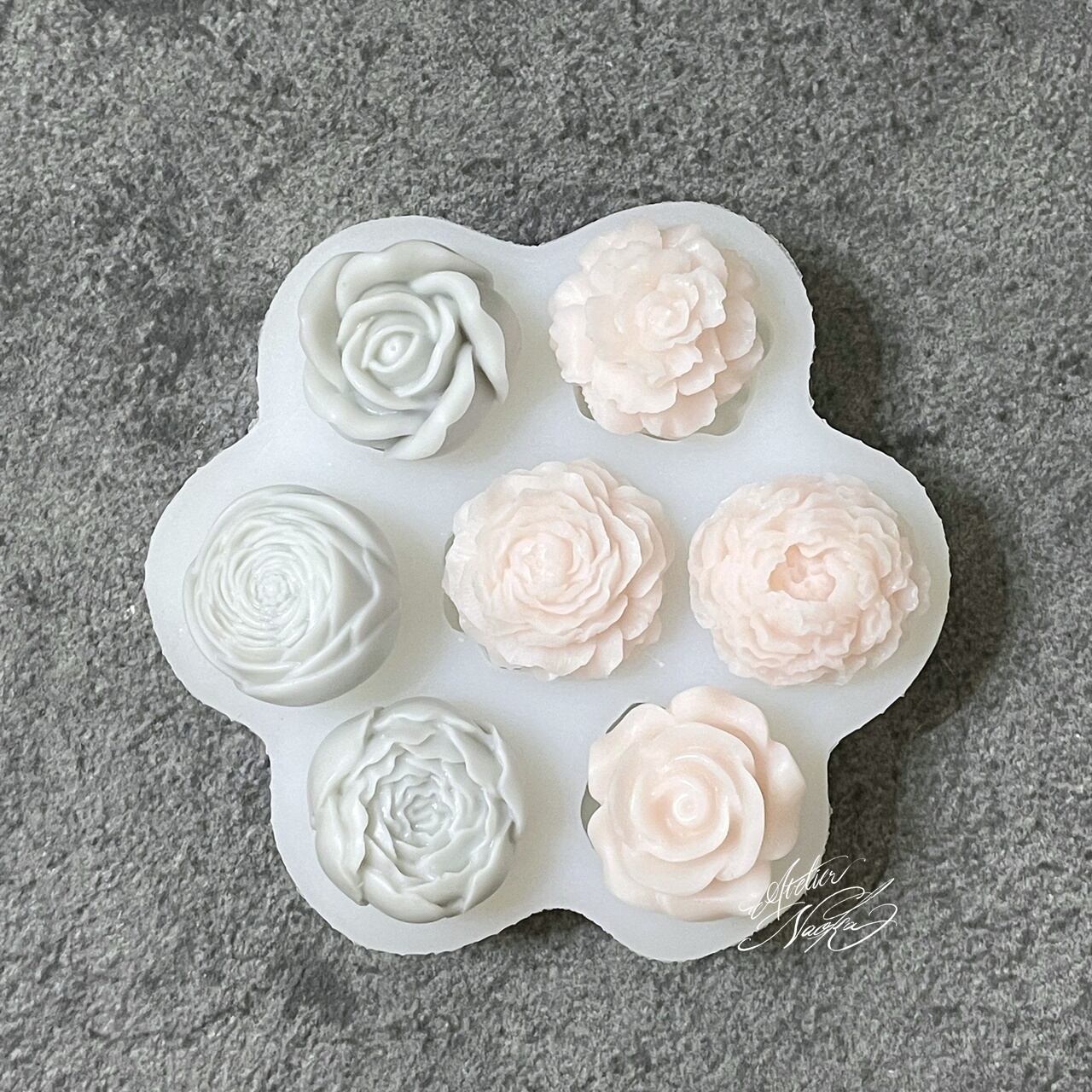 7種類の花の形を再現したシリコンモールドです。.:*・゚❀