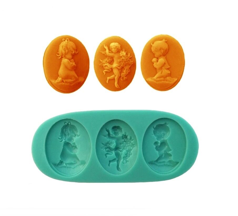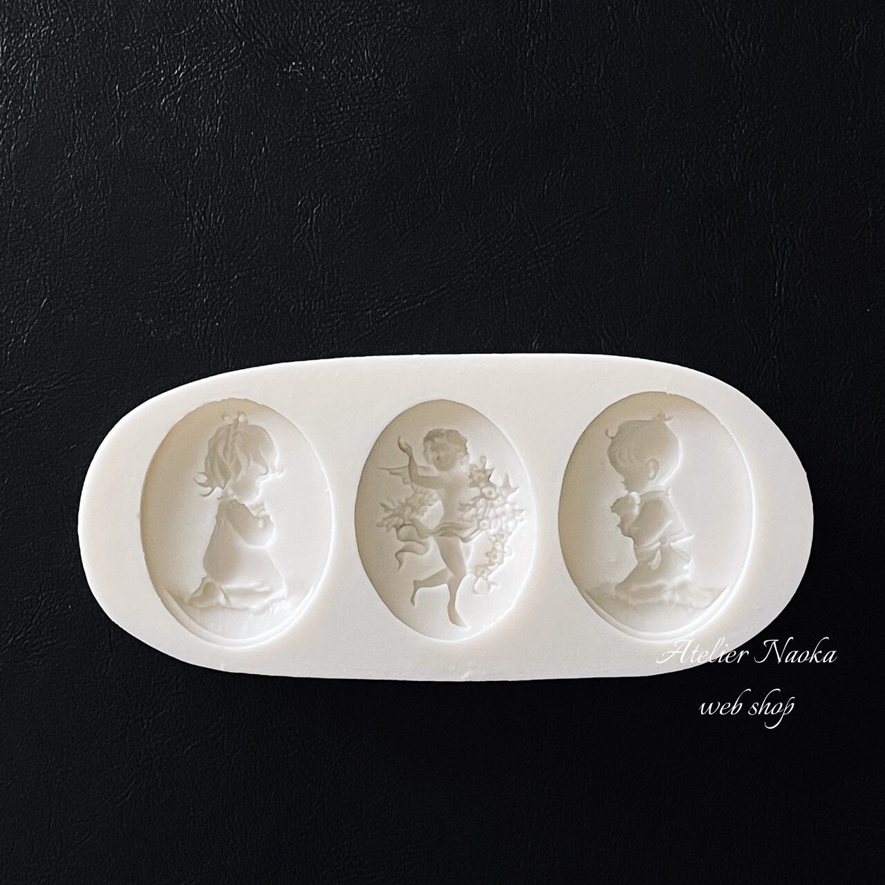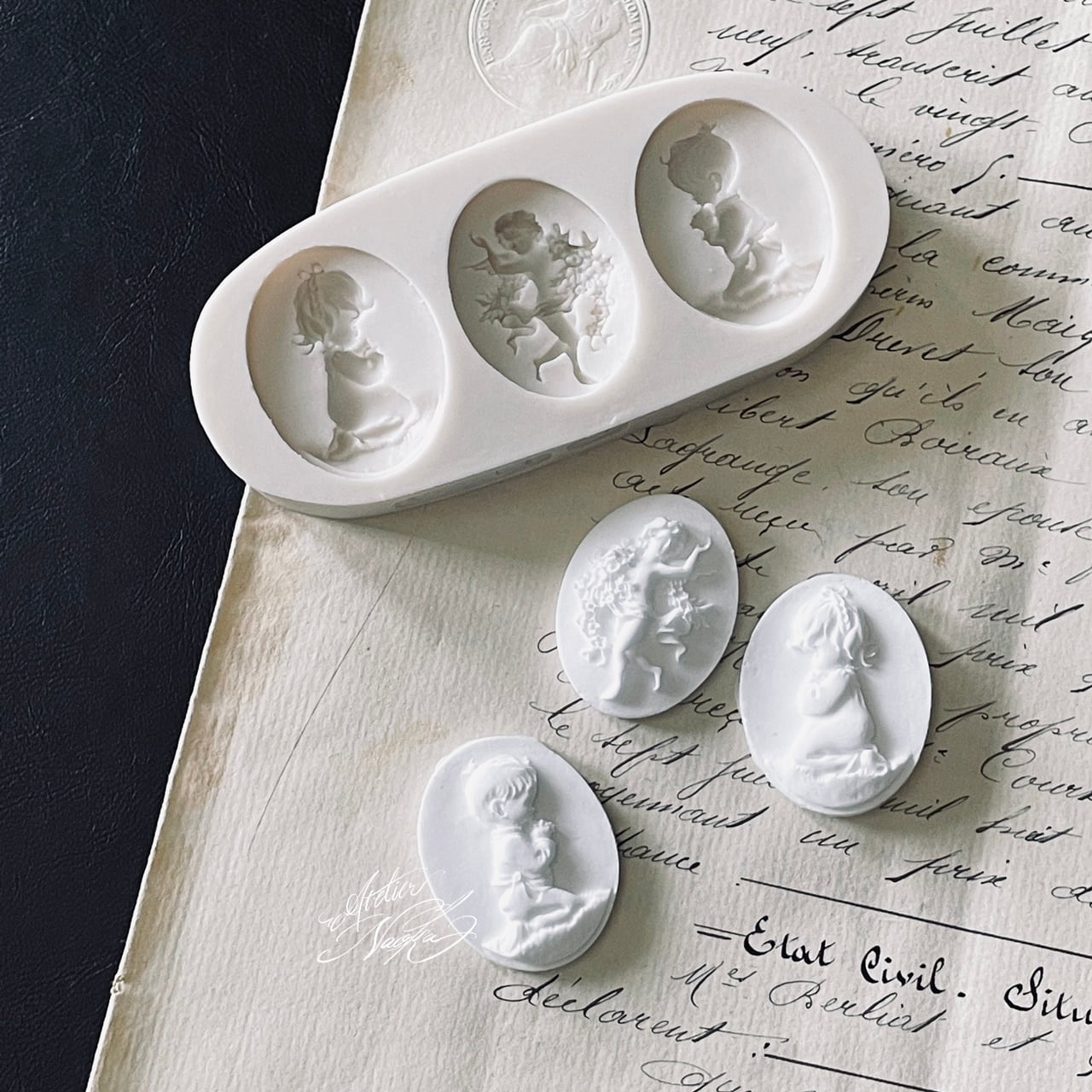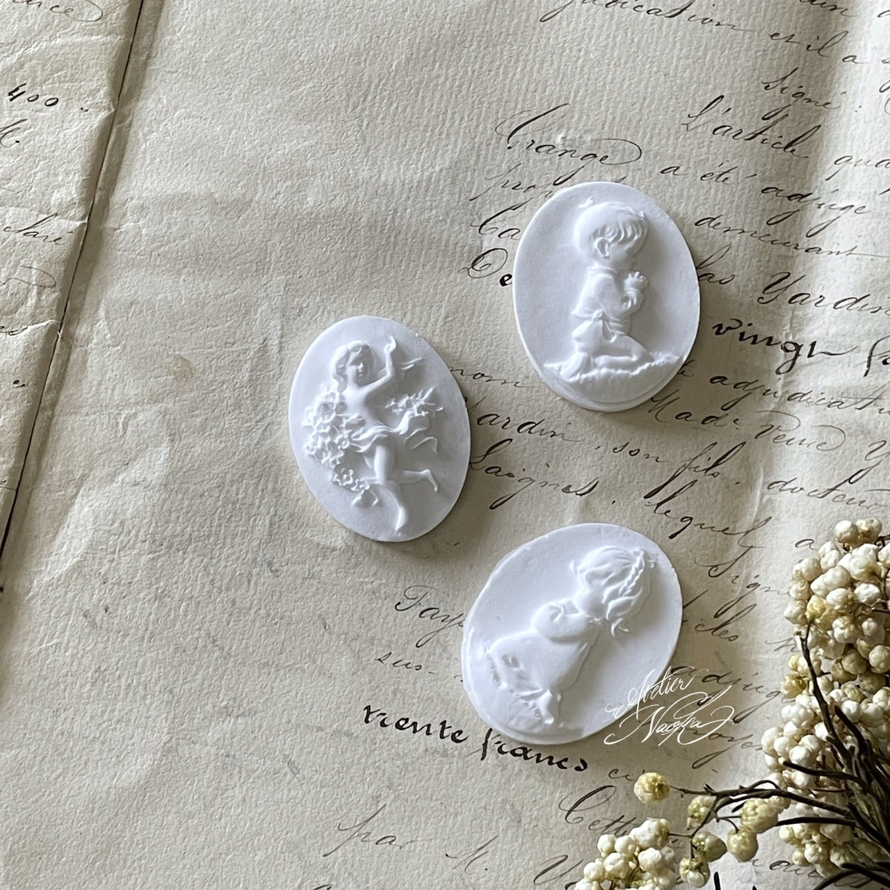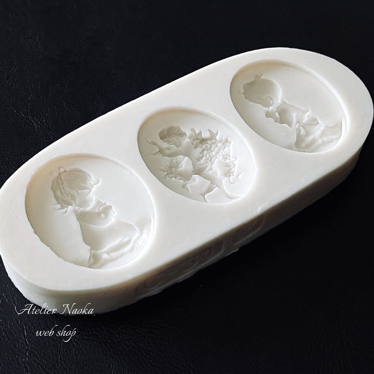 3種類の可愛らしい天使のカメオが作れるシリコンモールドです。