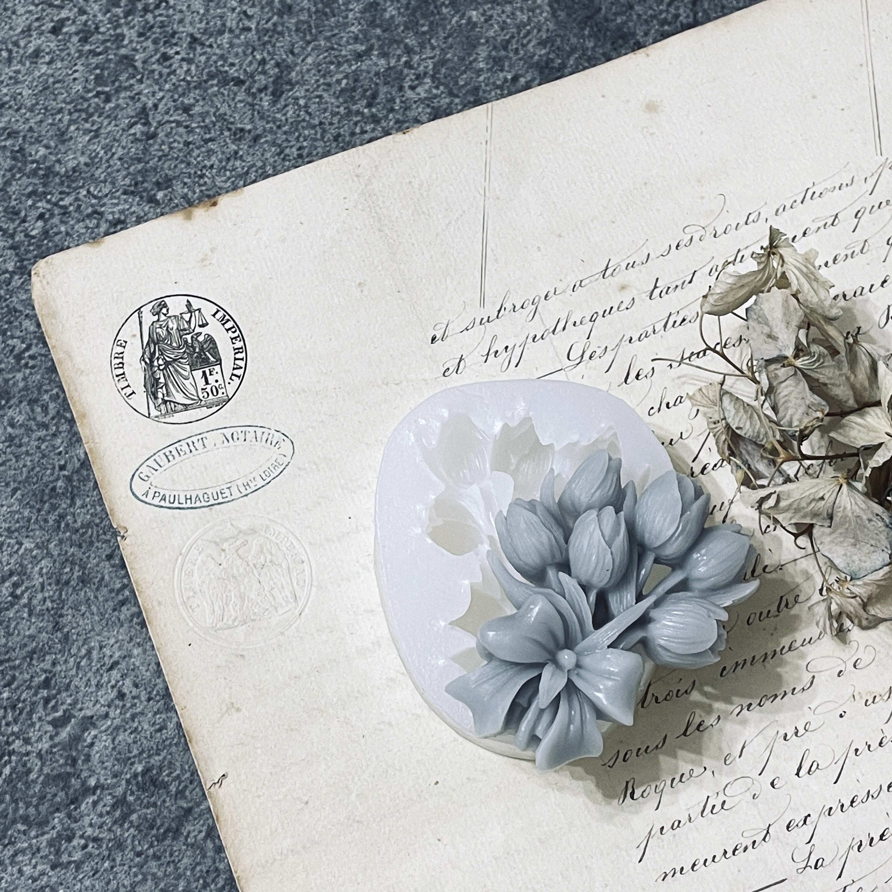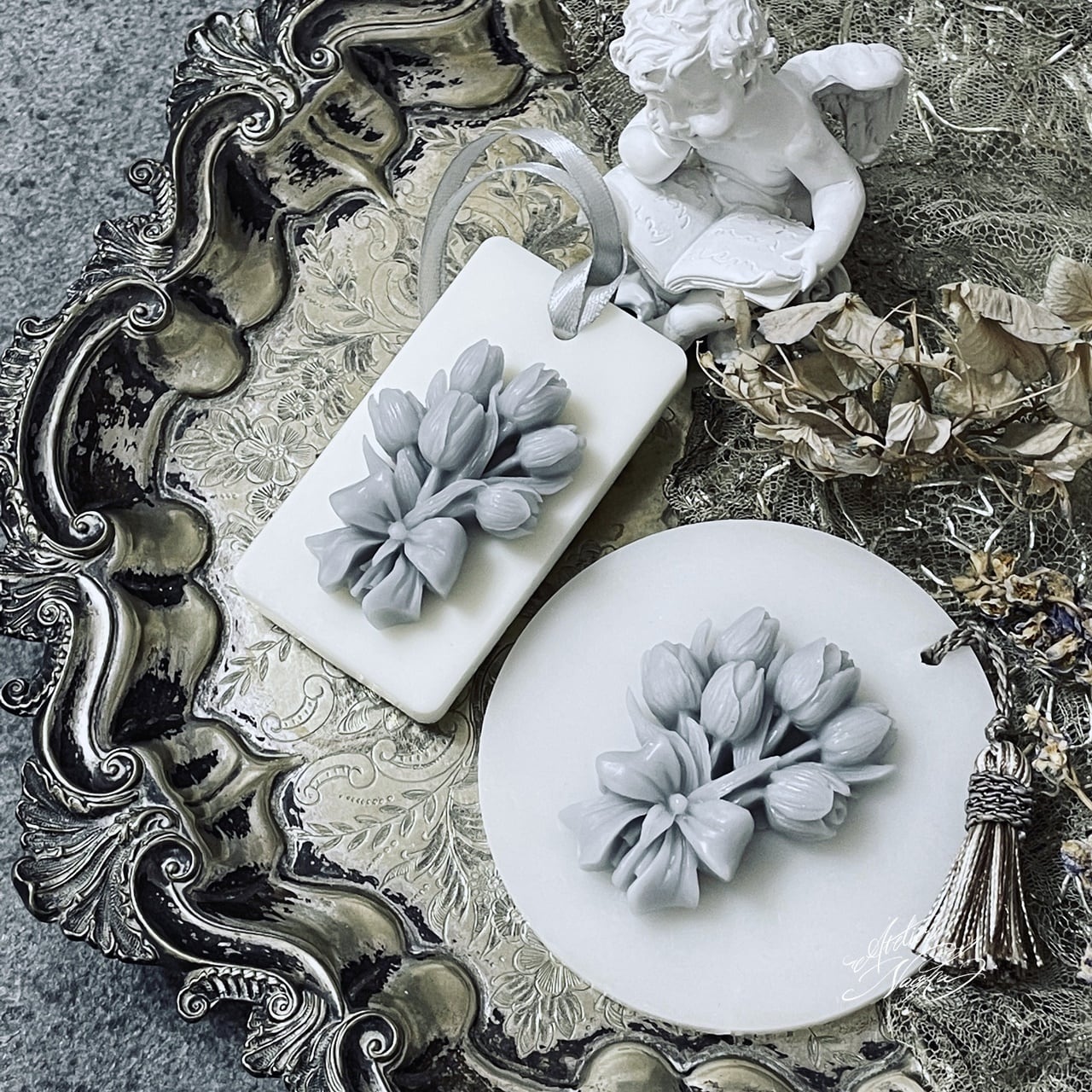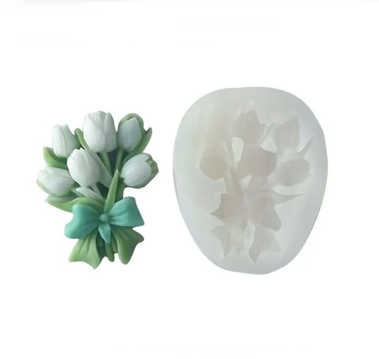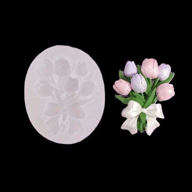 リボンに束ねられた チューリップ のシリコンモールドです。