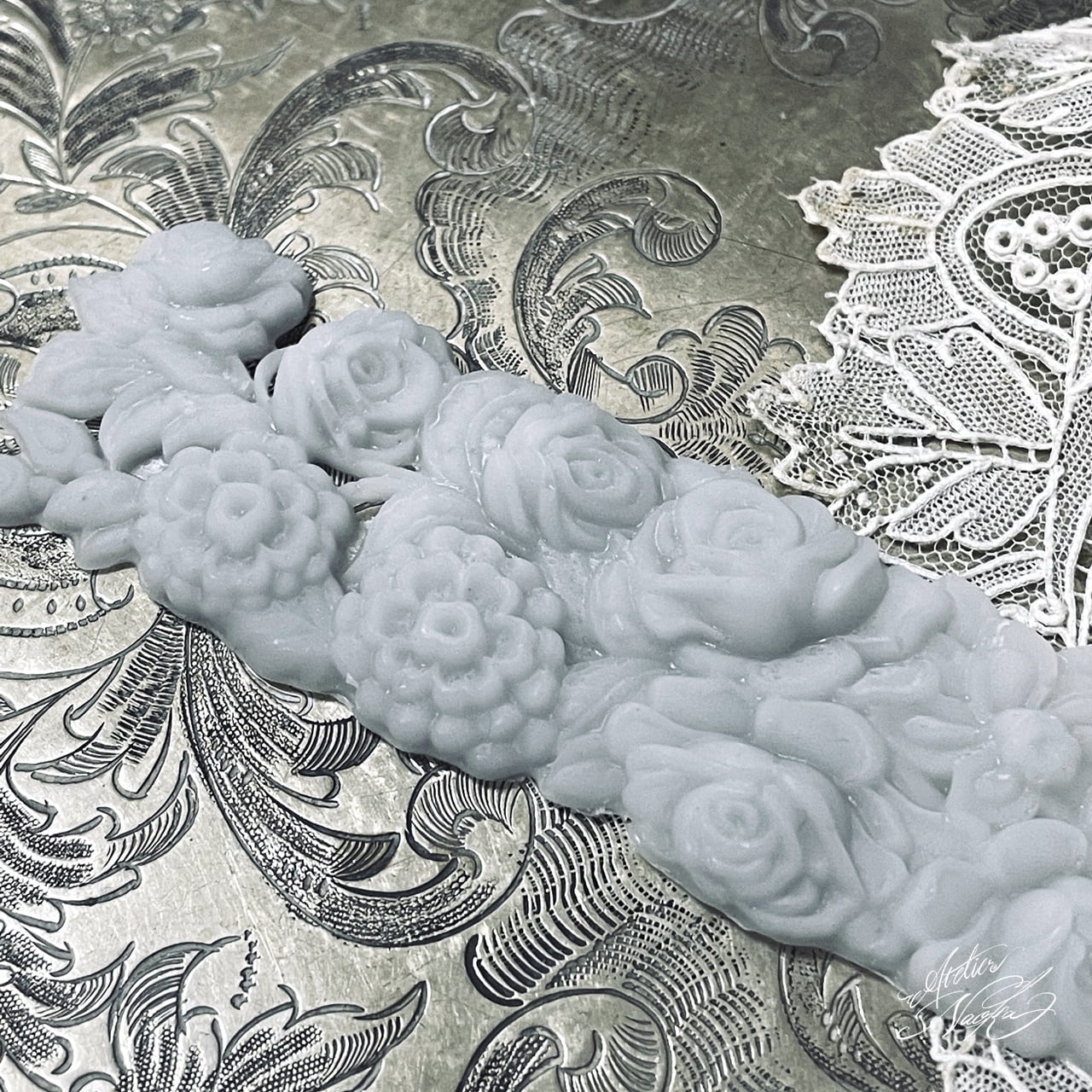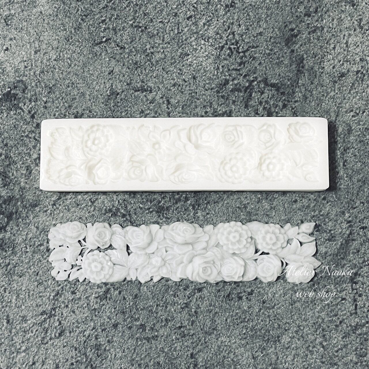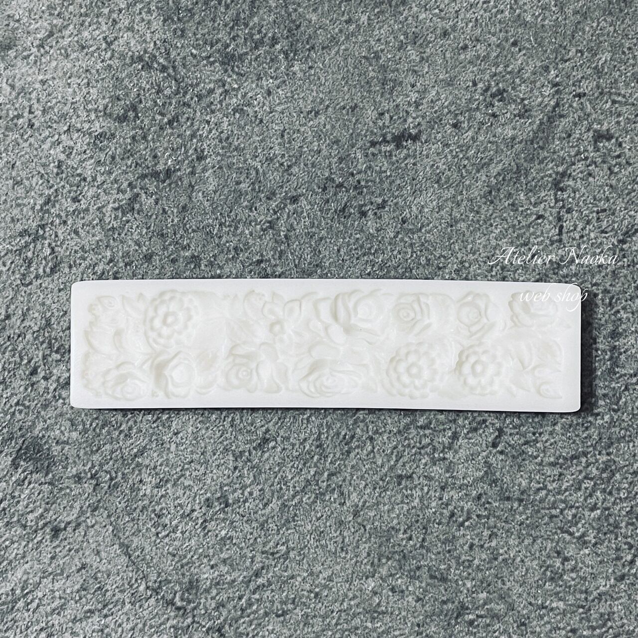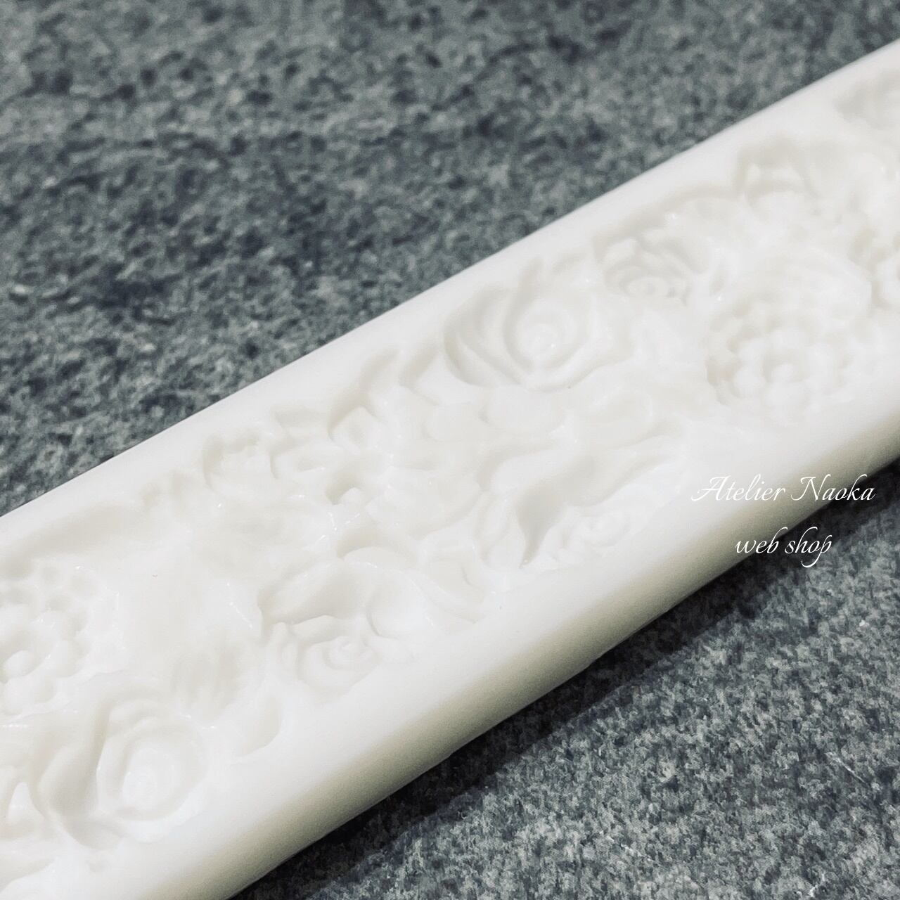 華やかな花のデザインが特徴のラインシリコンモールドです。