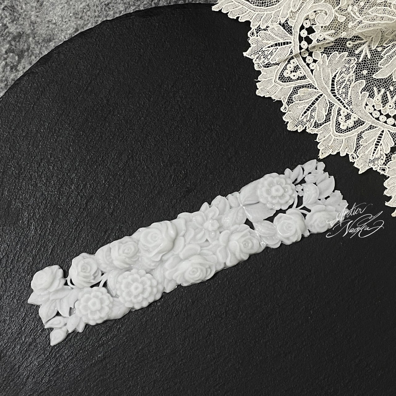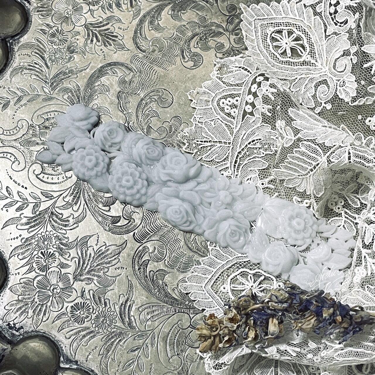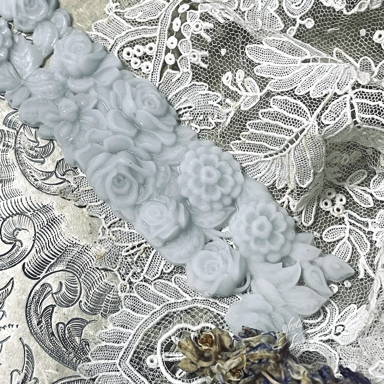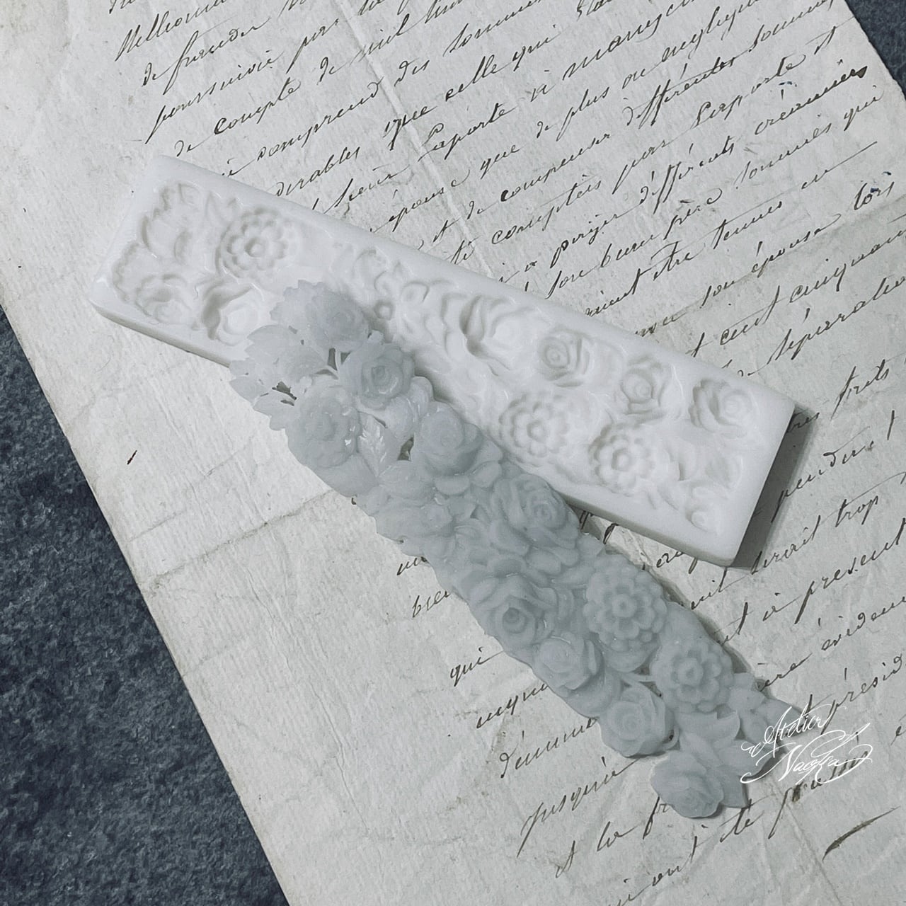 華やかな花のデザインが特徴のラインシリコンモールドです。