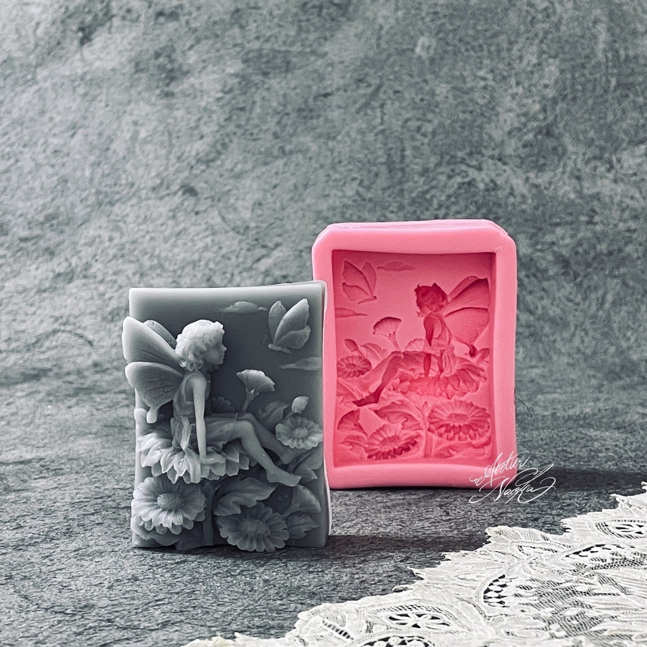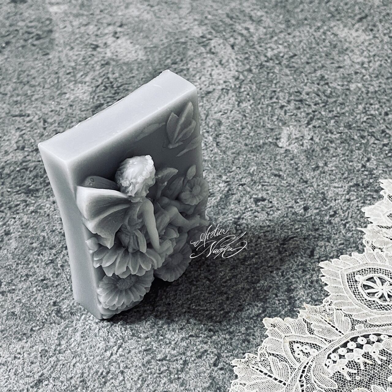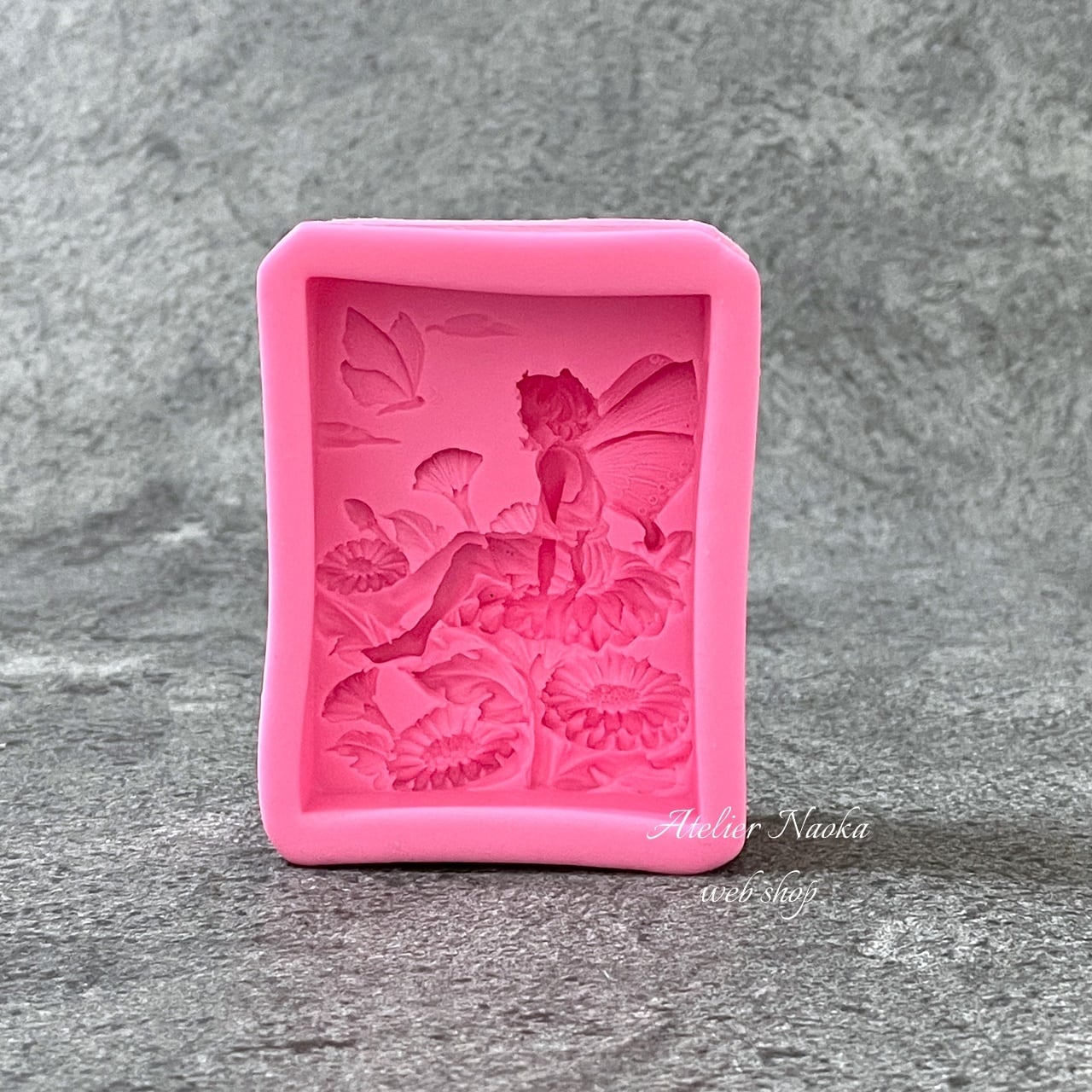 フラワーと妖精のレリーフが素敵なシリコンモールドです。
