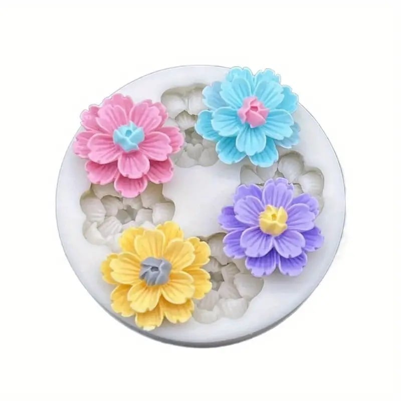 4個入りのお花のシリコンモールドです。