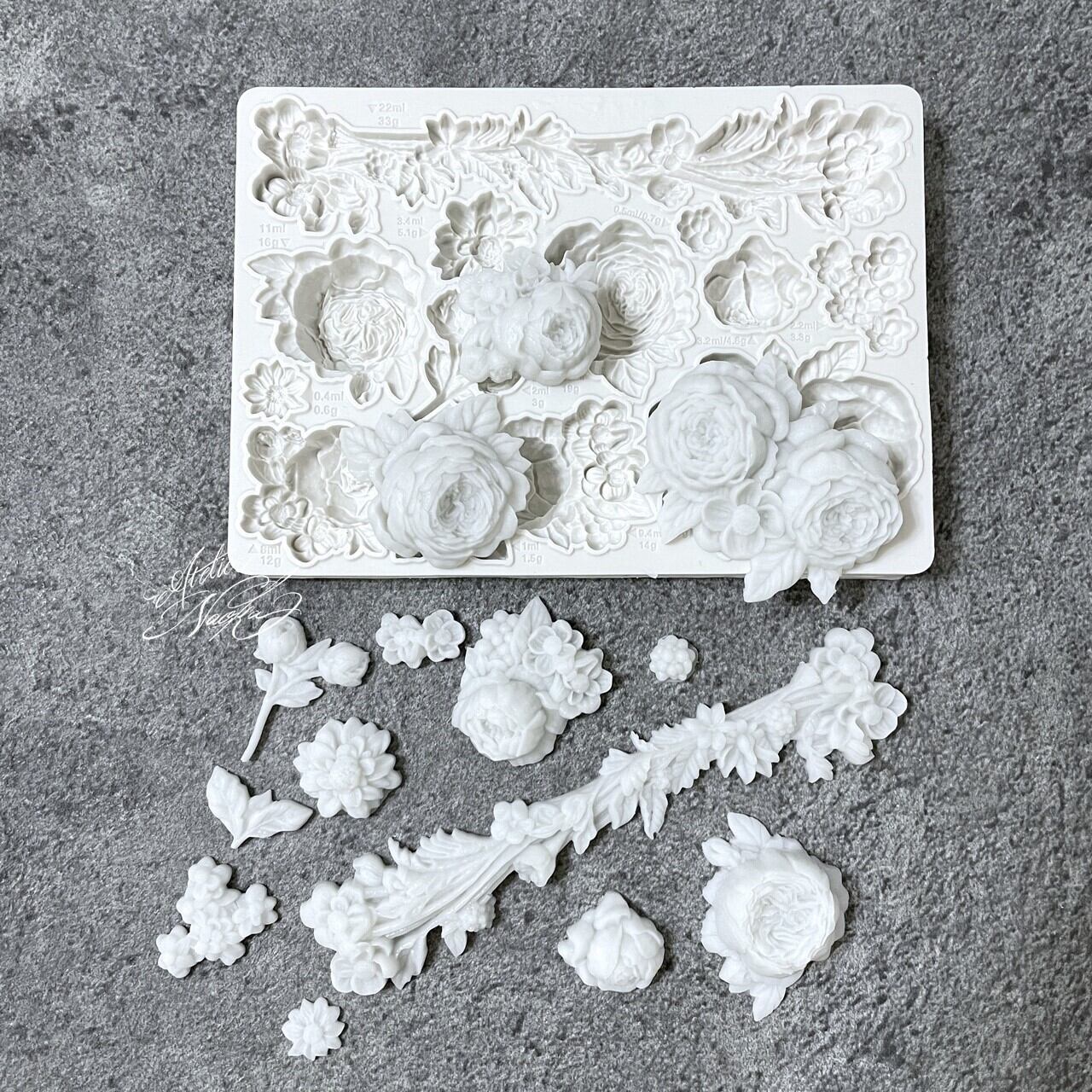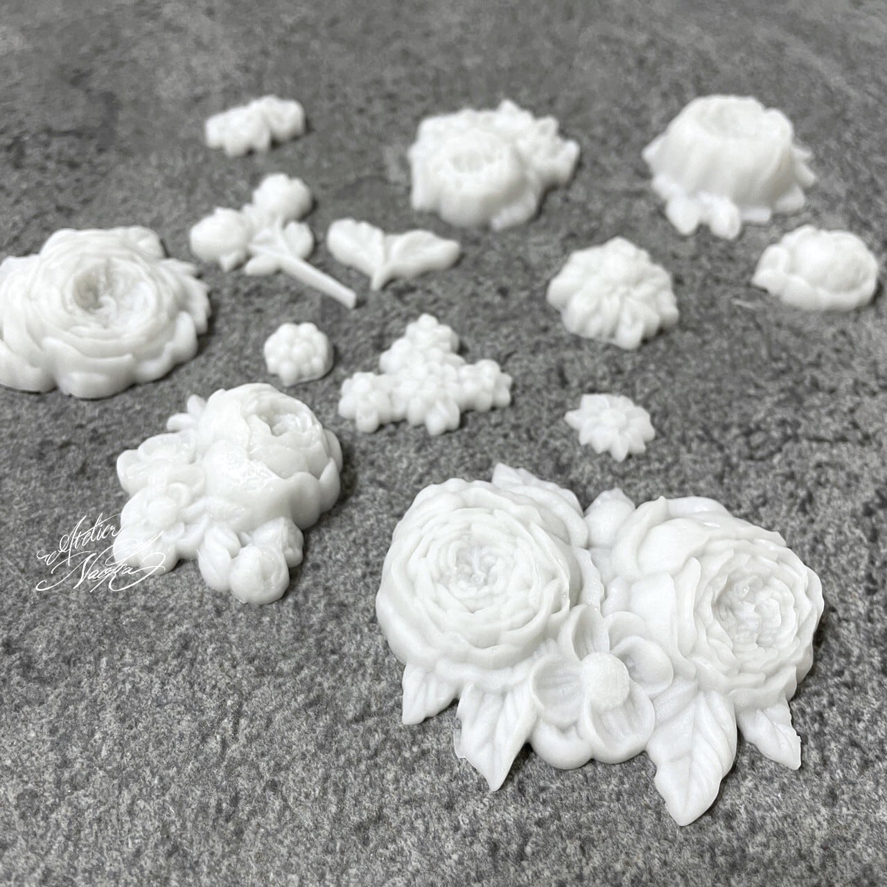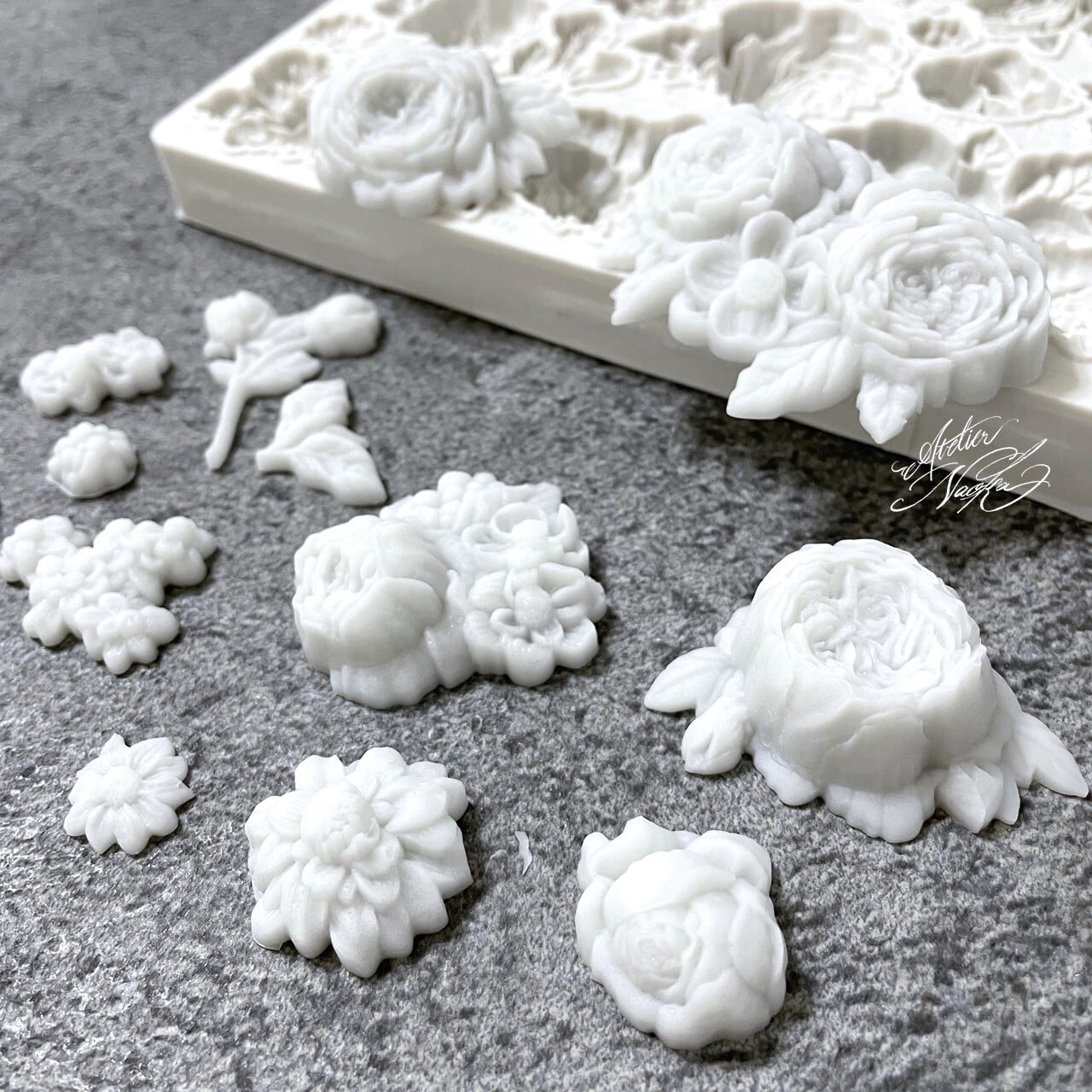 優雅なカップ咲きの薔薇やモチーフが14種類入ったシリコンモールドです。