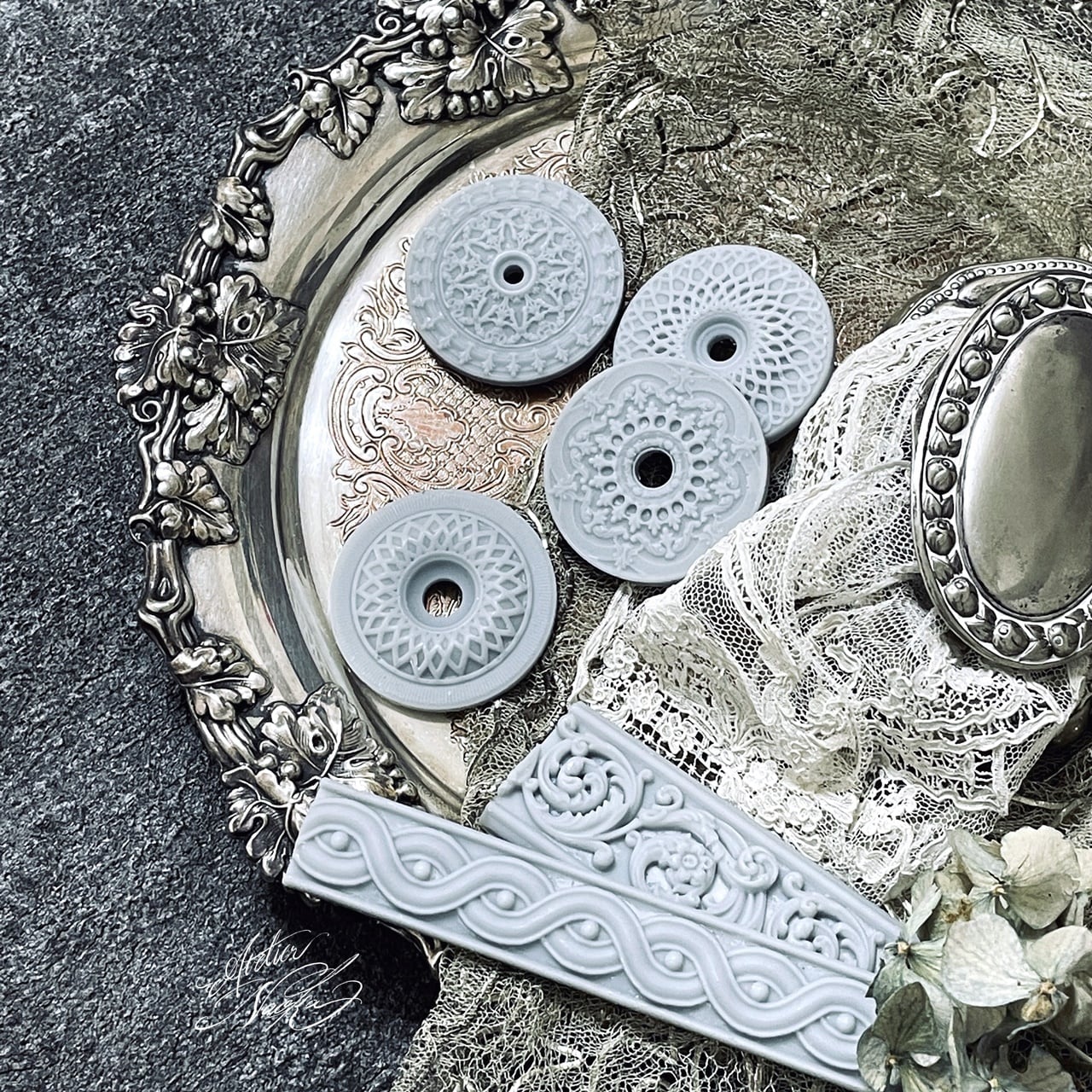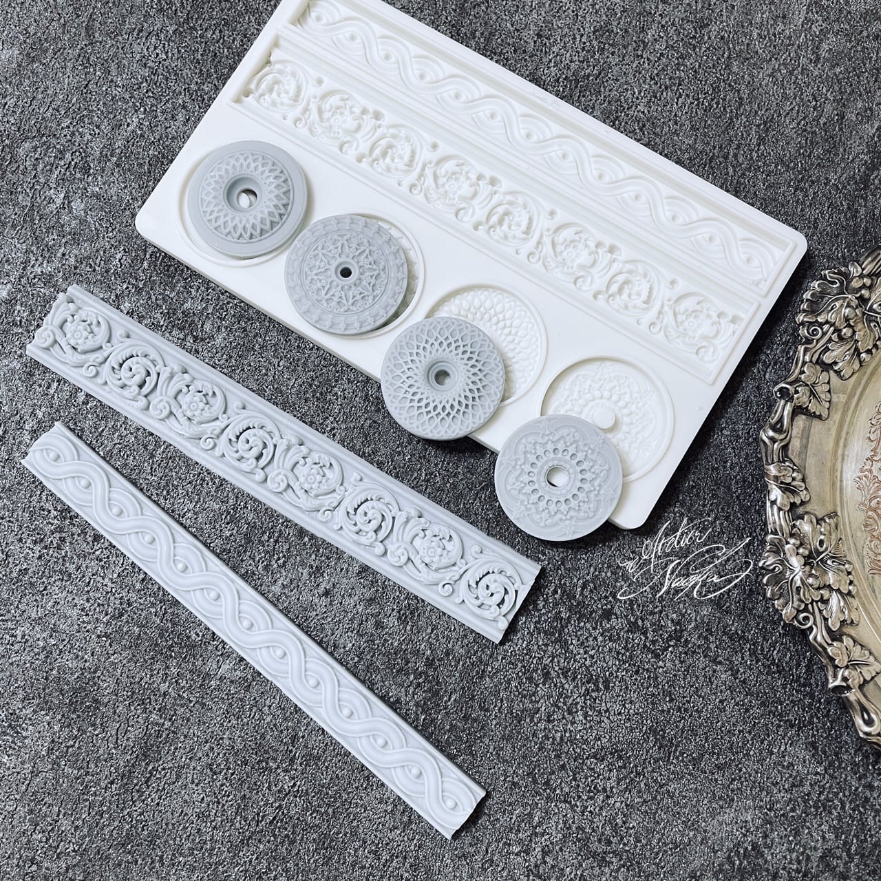 装飾 モチーフ(6種類 ラウンド&ライン) シリコンモールド
