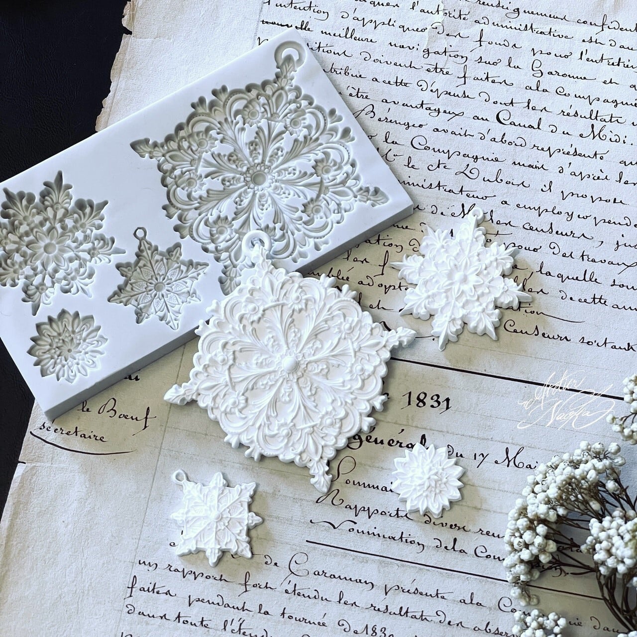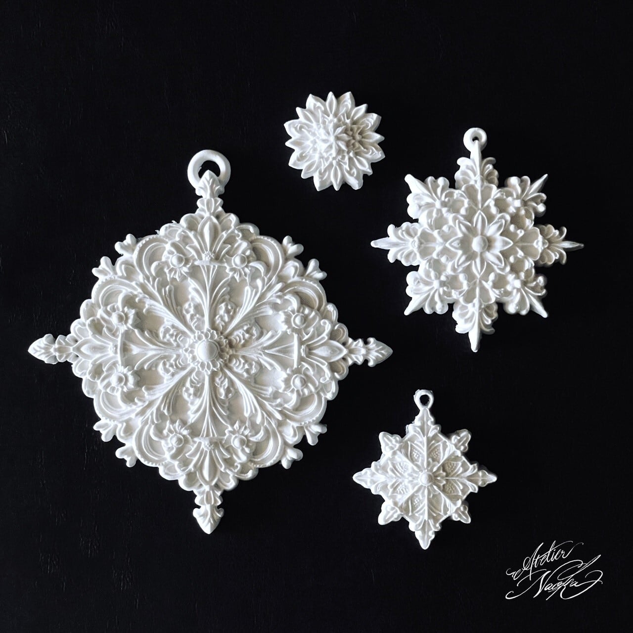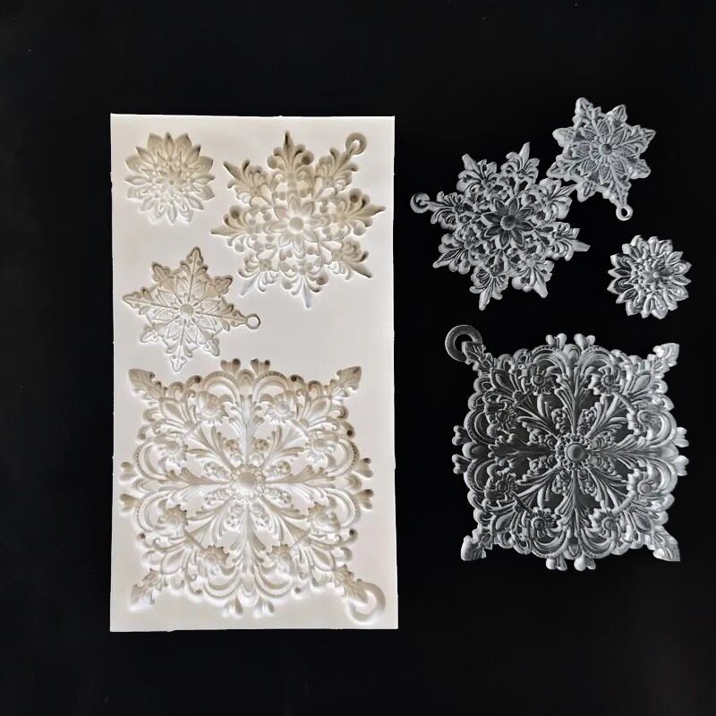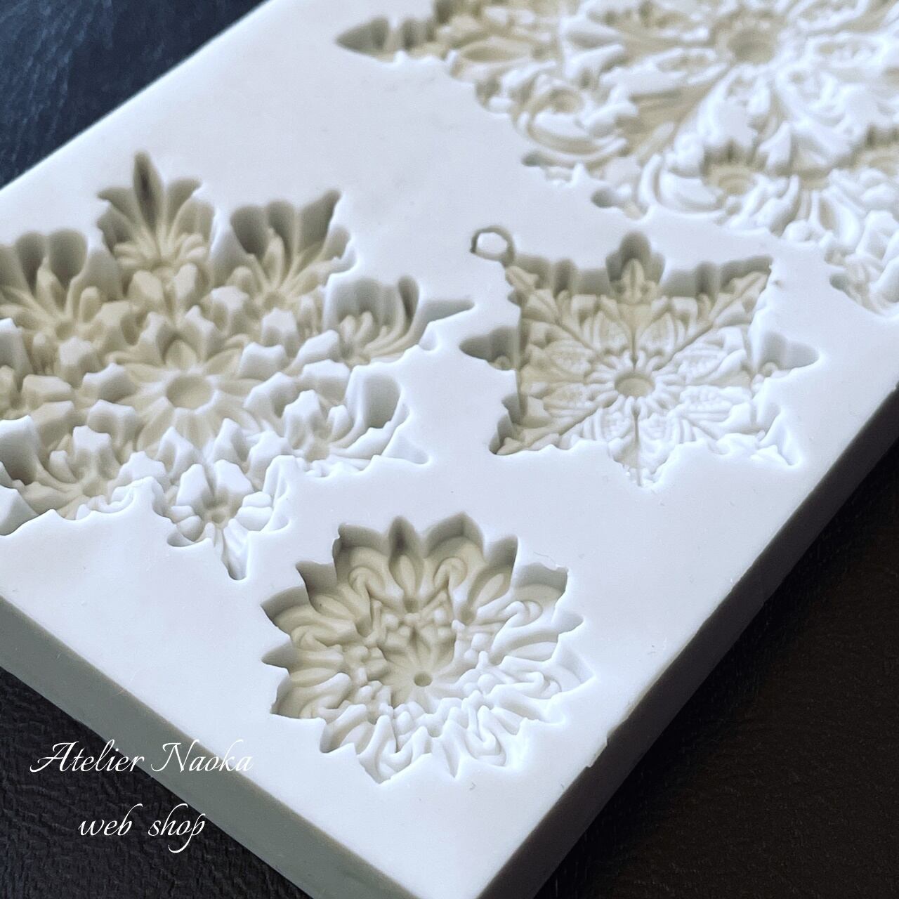 4種類の雪の結晶型がセットになったシリコンモールドです。