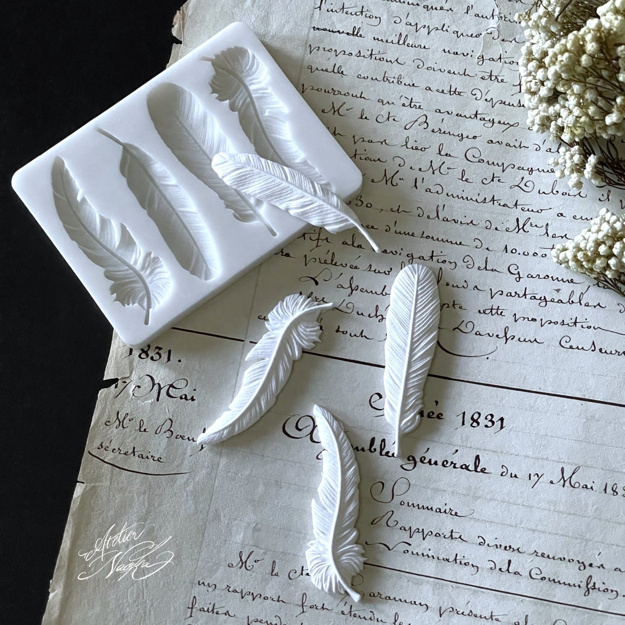 4種類の美しい羽根型がセットになったシリコンモールドです。